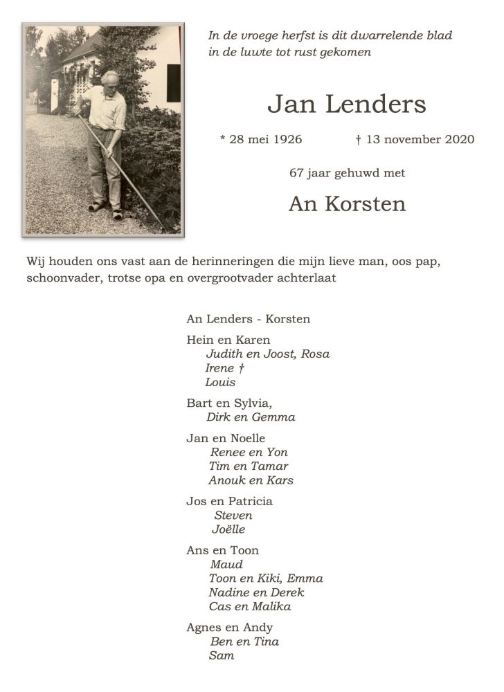 Overlijdensbericht: Jan Lenders †