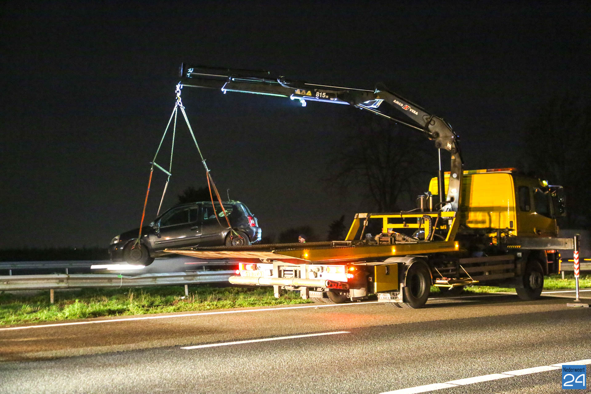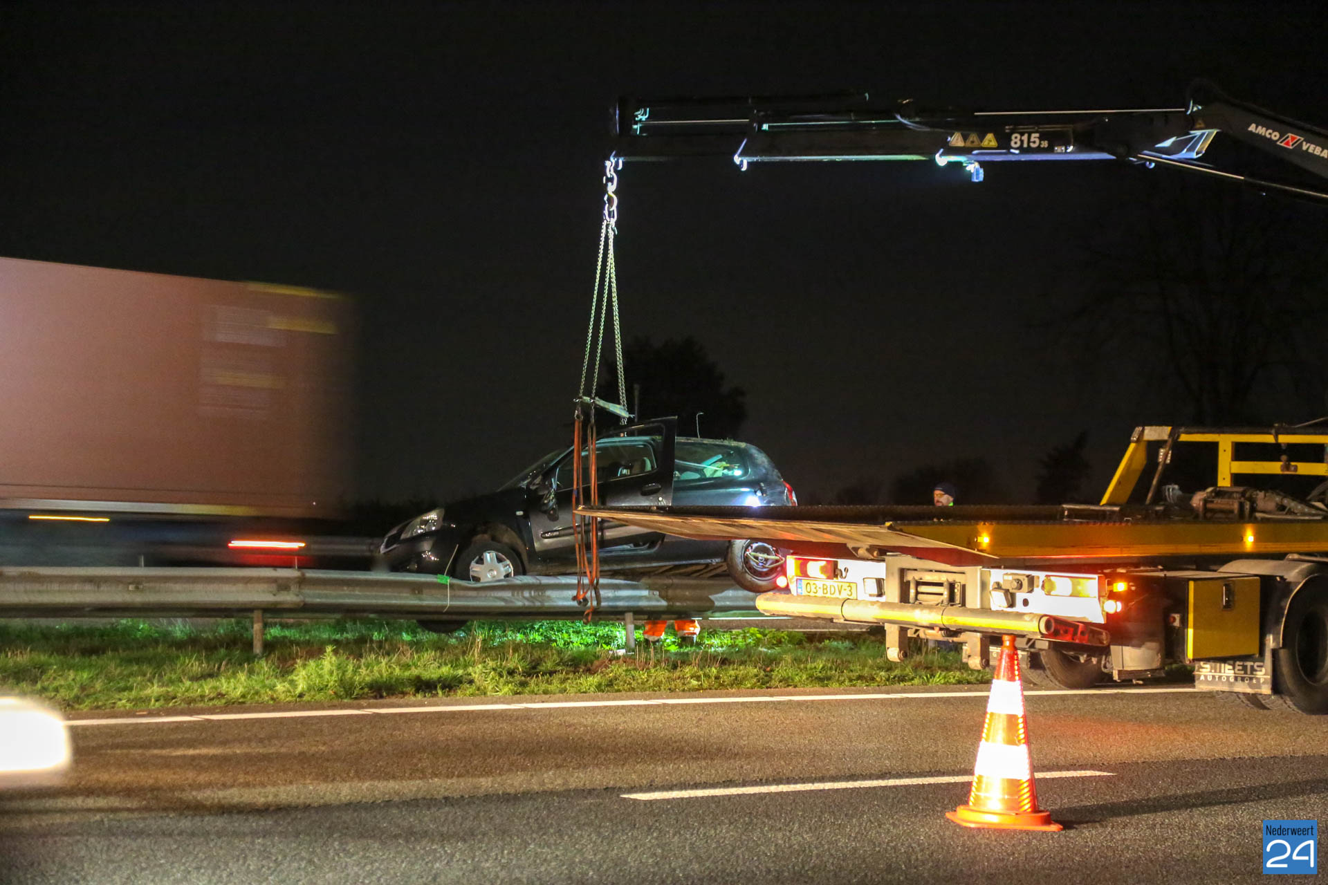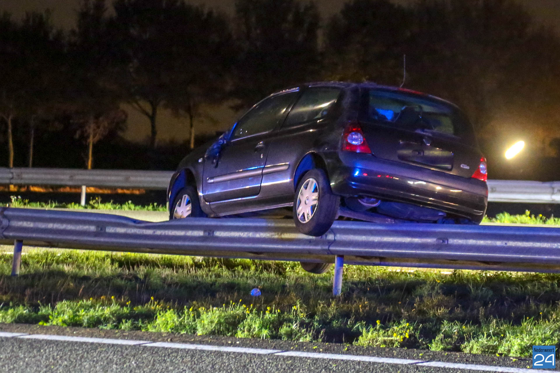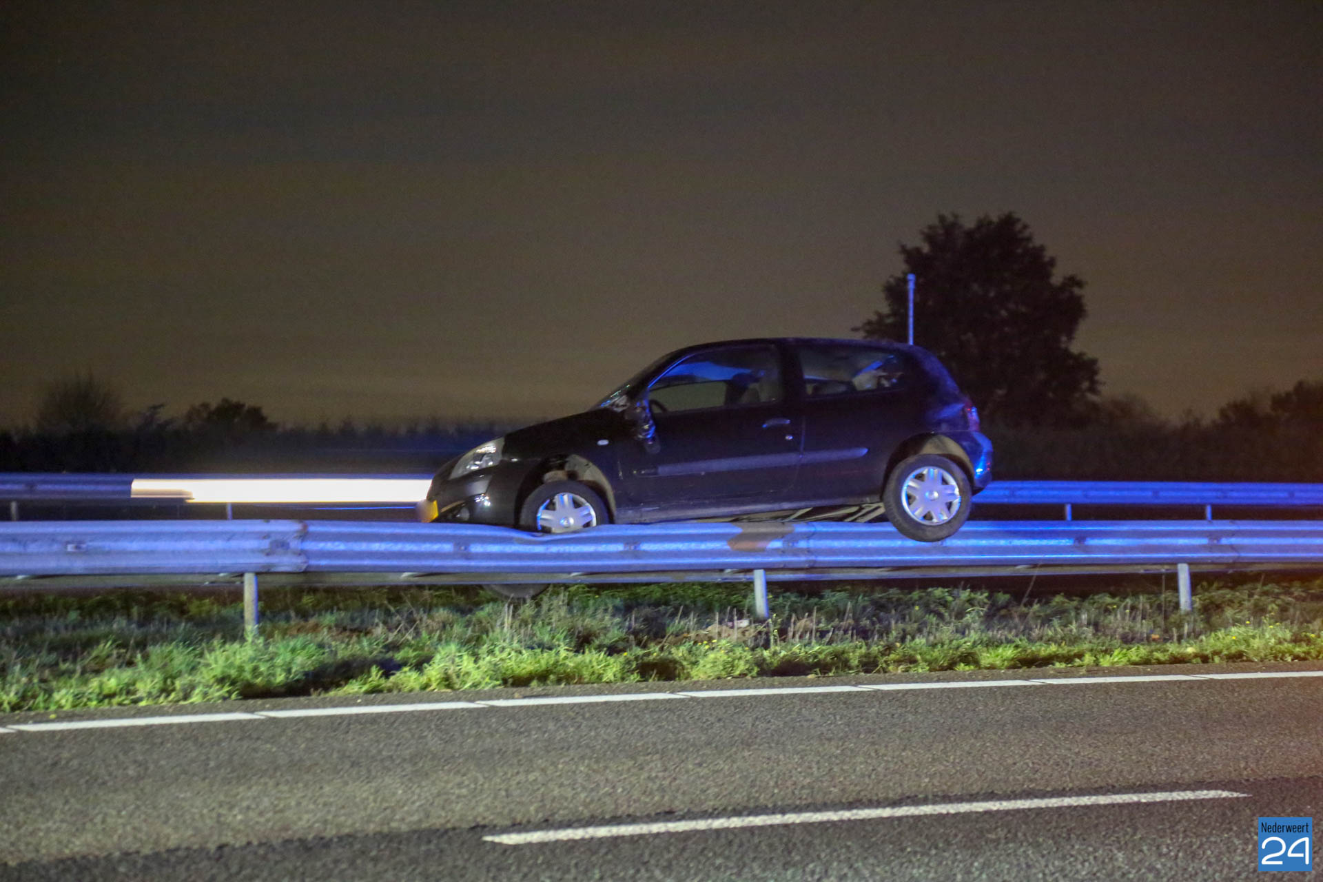 Dinsdagavond is een personenauto boven op de vangrail naast de A2 terecht gekomen. Het ongeval gebeurde ter hoogte van Nederweert, tussen afslag Nederweert en Kelpen-Oler.