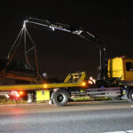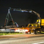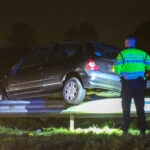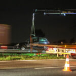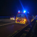 Een ambulance is ter plaatse om eventuele gewonden te helpen. De politie heeft tijdelijk één rijstrook afgezet om een veilige situatie te creëren voor de hulpdiensten. Een berger is ter plaatse om het voertuig uit deze ‘rare’ positie te halen.