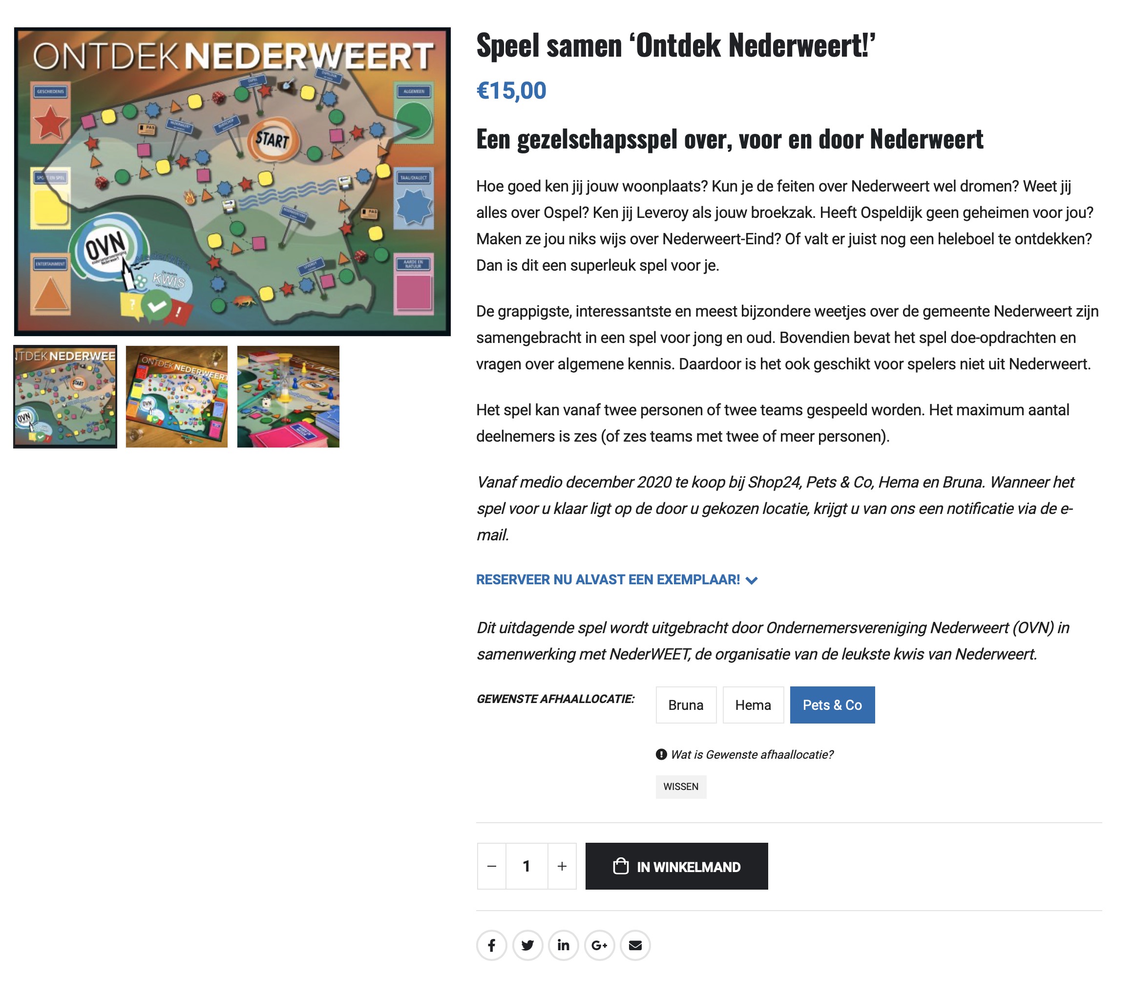 De naam van het spel is niet geheel toevallig gekozen. Om ondernemers een platform te geven waarop zij gemakkelijk gevonden kunnen worden, gecombineerd met informatie over activiteiten en meer, is op initiatief van de OVN de website www.ontdeknederweert.nl gerealiseerd. Het streven is alles in jouw gemeente onder één digitaal dak te presenteren. Maar eerst …..speel het spel!