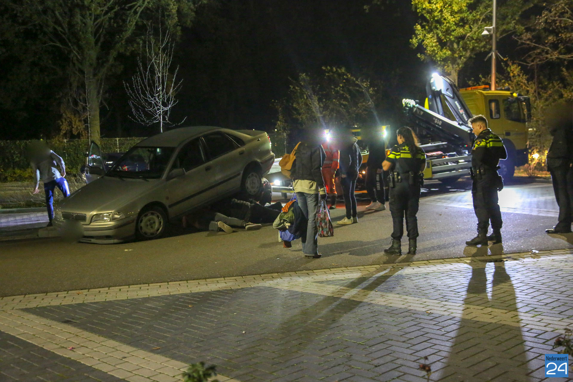 Enkele jongeren welke aanwezig waren op de parkeerplaats hielpen met het weghalen van de steen. Hierna kon de auto geborgen worden. De bestuurster bleef ongedeerd. De auto liep enige schade op.