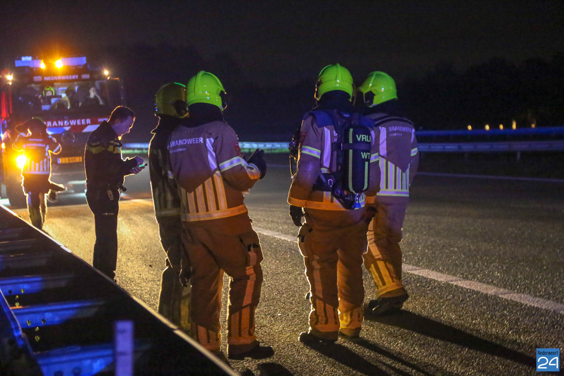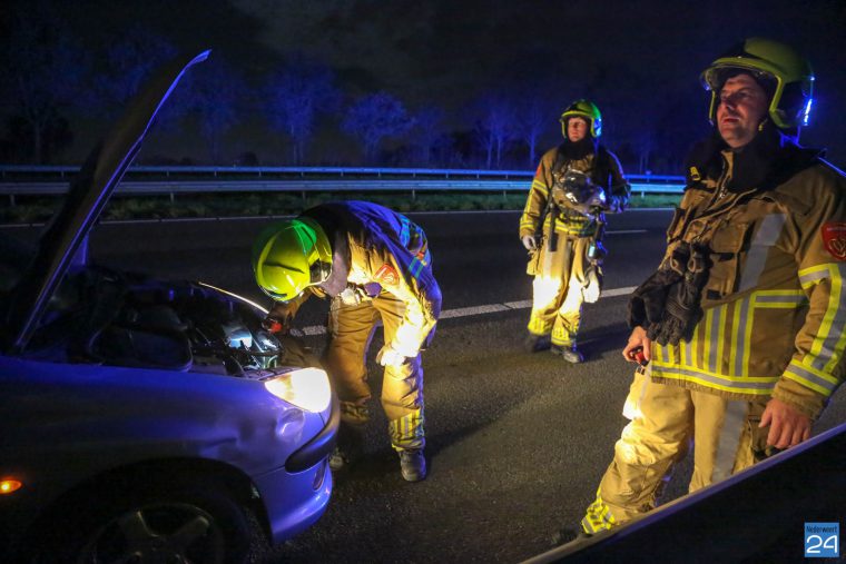 Omdat er wat rook zichtbaar was werd de brandweer ingeschakeld. De brandweer van Nederweert en Grathem kwamen samen met de politie ter plaatse. De auto stond op de vluchtstrook, enkele honderden meters voor de afslag Nederweert in Noordelijke richting.