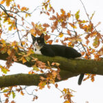 Siepie was enkele dagen geleden omhoog geklommen, maar kwam daarna niet meer naar beneden. De baasjes hadden geen ladder die groot genoeg was, en dus werd de brandweer gebeld. Deze kwam met een ladderwagen ter plaatse om Siepie uit de boom te halen.
