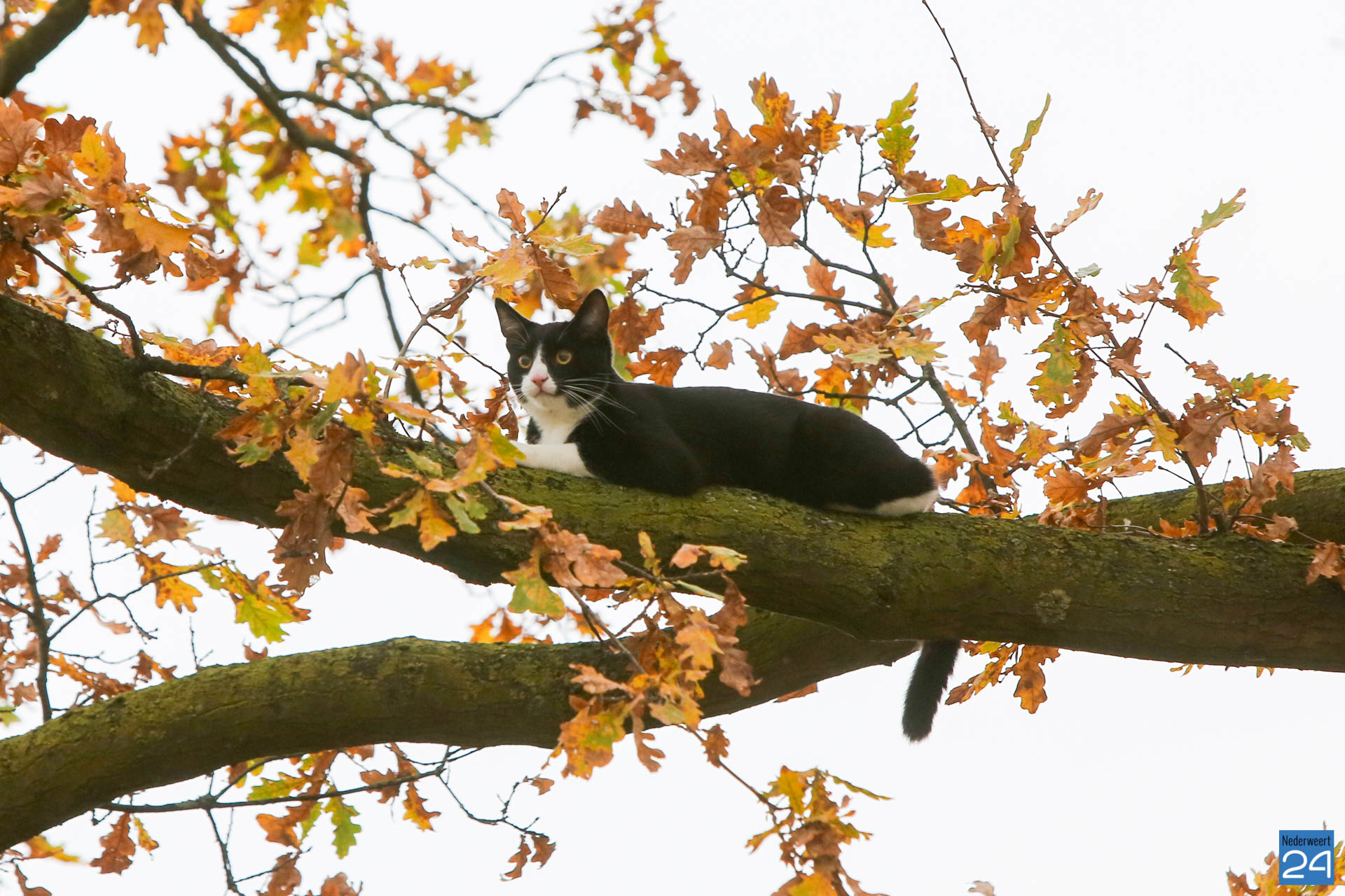 Donderdagmorgen is poes Siepie uit een boom gered aan de Smisserstraat in Nederweert.