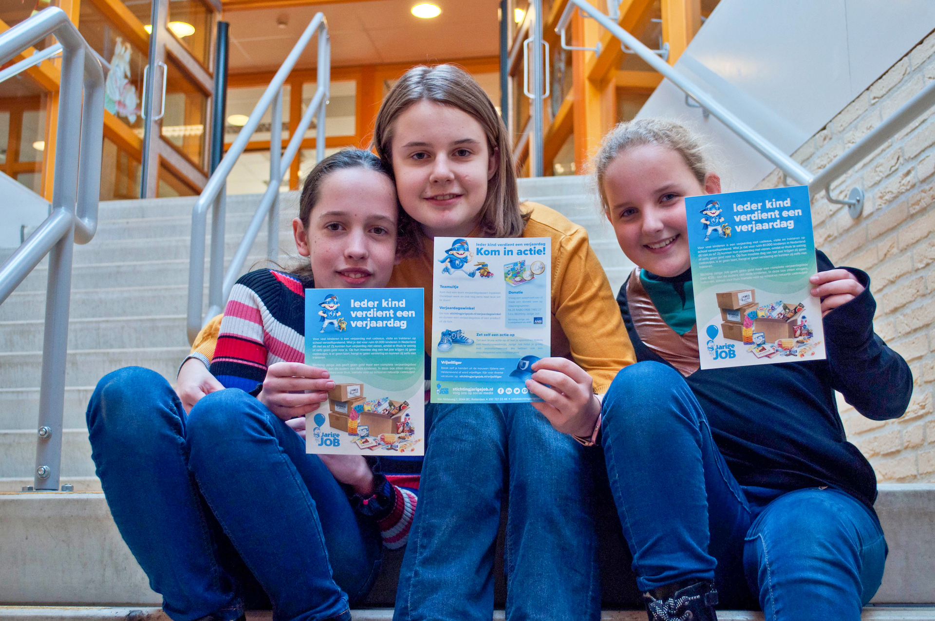 Stichting Jarige Job (opgericht in 2010) maakt zich sterk om zoveel mogelijk van deze kinderen een geweldige verjaardag te laten beleven. Niet door een gelddonatie, maar door een verjaardagsbox te geven die gevuld is met versiering, traktaties voor in de klas, wat lekkers voor de visite en natuurlijk een mooi cadeau! Want, samen delen is een feestje; ook als je de andere kinderen niet kent. Met het bedrag dat de leerlingen hebben opgehaald kunnen weer zo’n 40 verjaardagsboxen worden gevuld.