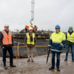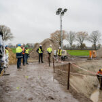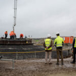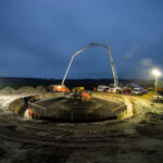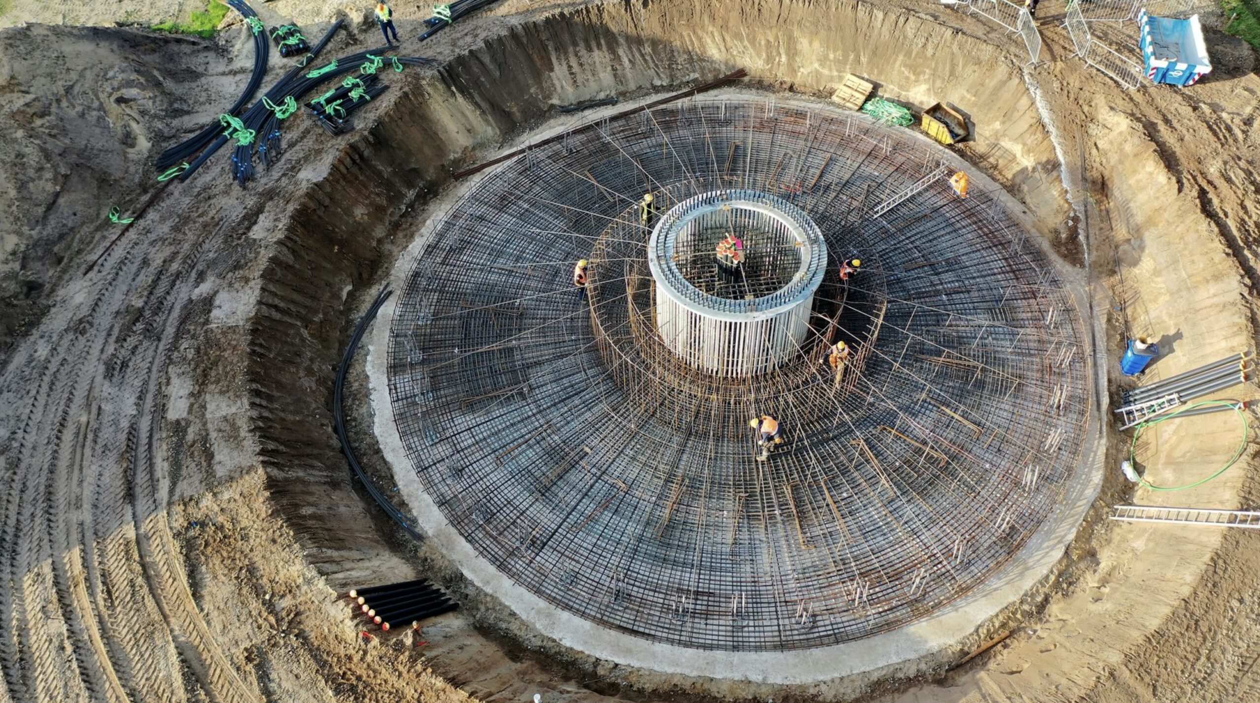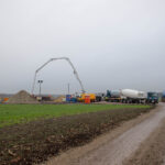 In Ospeldijk bouwt Zuidenwind samen met WML vier Nordex-windturbines. Het zijn dezelfde type molens als onlangs gebouwd in Heibloem, maar dan met een masthoogte van 135 meter. Men is momenteel druk bezig met het aanbrengen van de fundering. Elke fundering is goed voor circa 600 m3 beton, dat zijn flink wat vrachten die naar Ospel worden gereden. Vroeg beginnen is dan ook vanzelfsprekend. Dinsdagmorgen kwam een delegatie van de gemeente een kijkje nemen.