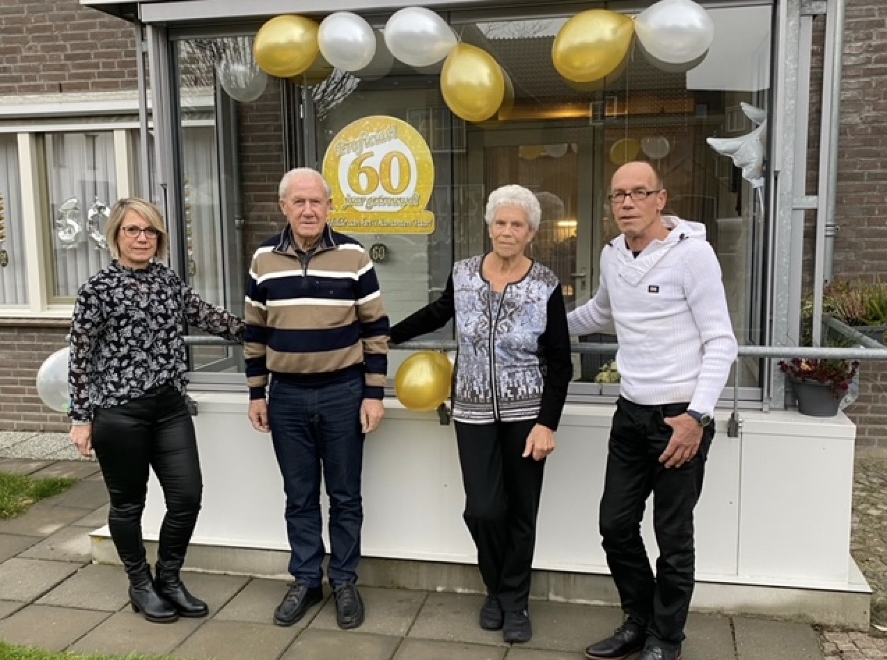 Van harte gefeliciteerd met jullie 60jarig huwelijk. Mooie dag samen met U (klein) kinderen. Blijf gezond.