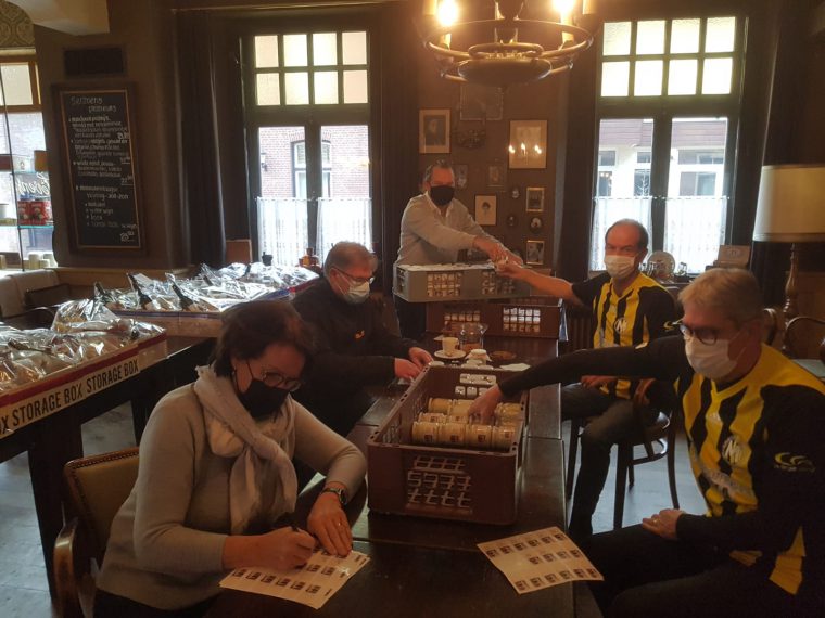 “Dinsdag 8 september is onze hulpactie gestart. Dagelijks zijn vier teamleden -twee per dagdeel- in touw om te helpen met het verwerken van cadeaupakketten en kerstartikelen. In sommige gevallen dragen ook de partners van onze spelers een steentje bij“.