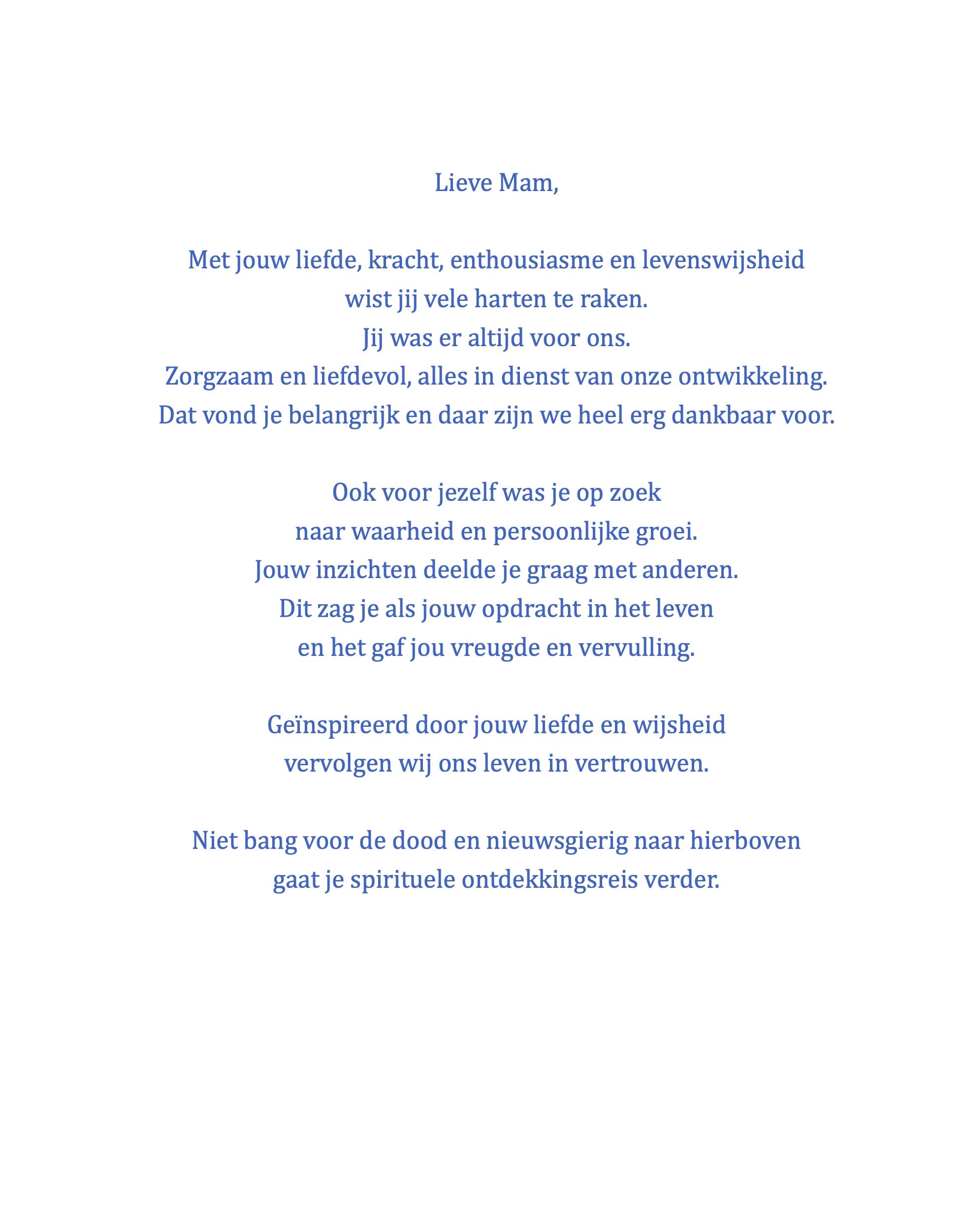 Ik zal altijd de vele gesprekken en appjes die we samen hebben gehad in gedachten houden en vaak aan haar blijven denken met veel mooie herinneringen.