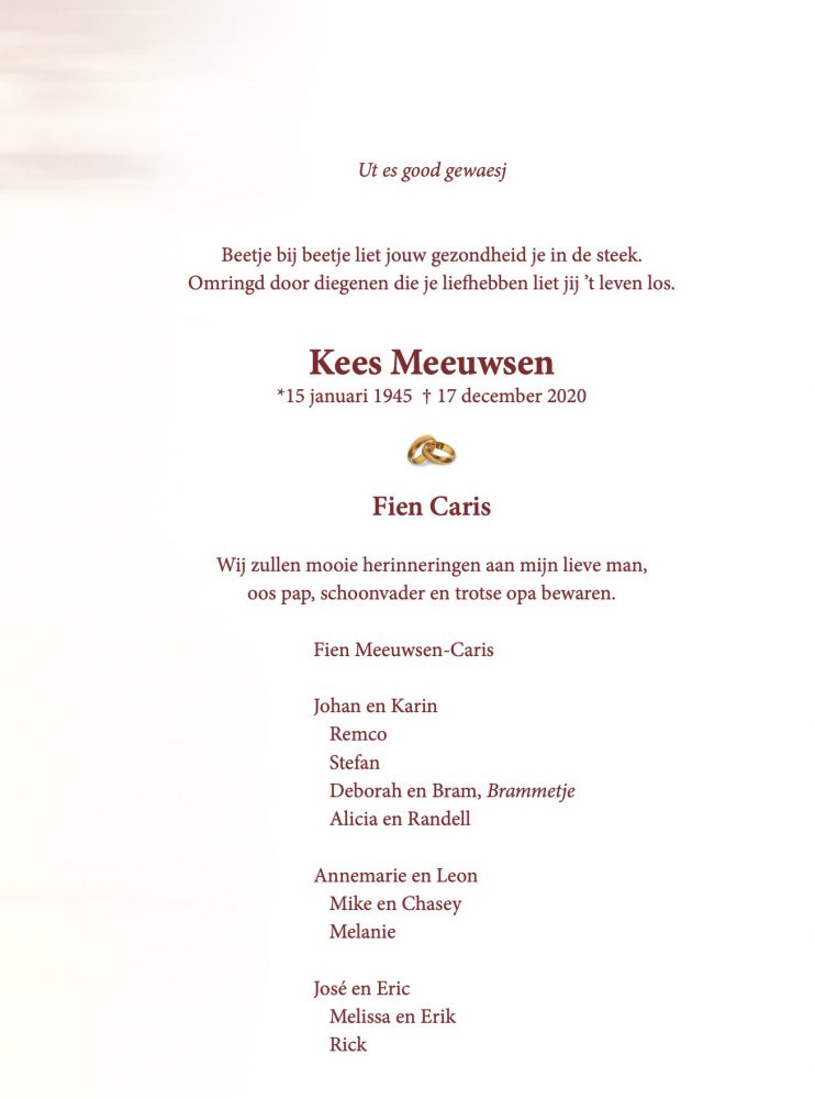Overlijdensbericht: Kees Meeuwsen
