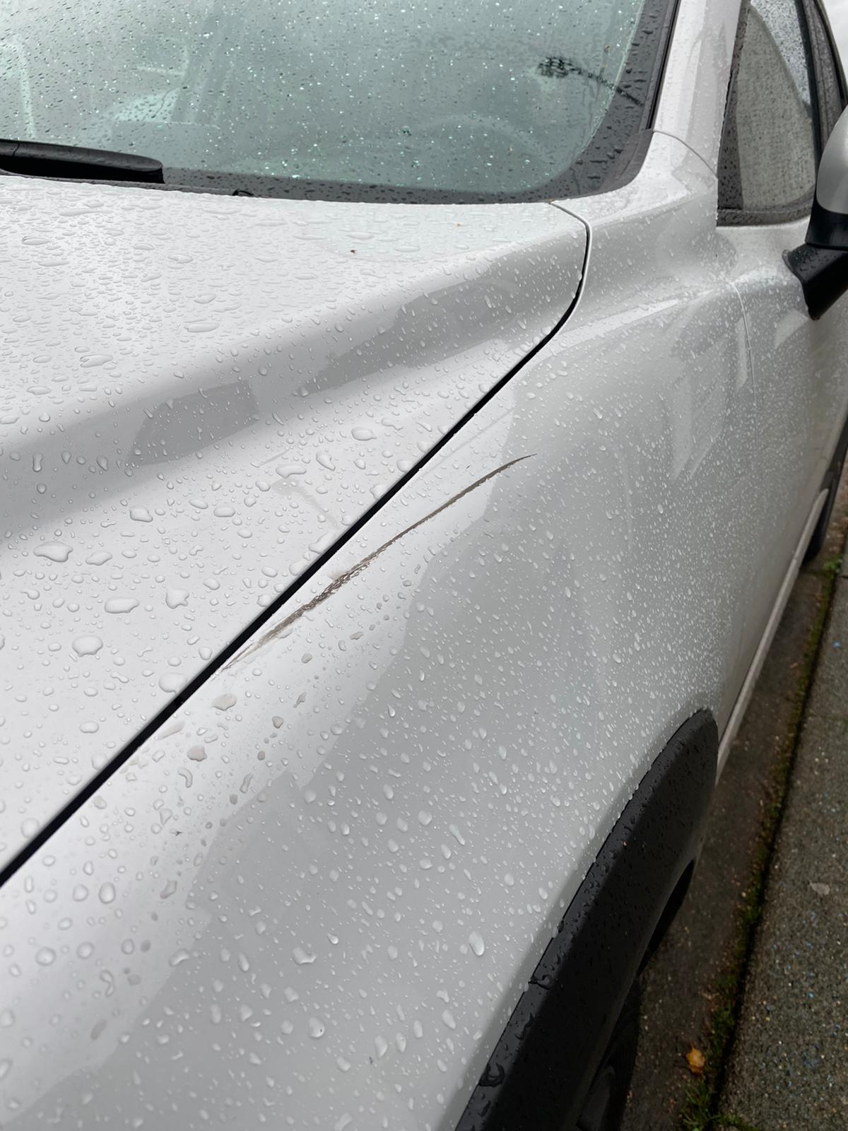 “We zaten thuis op de bank en hoorde een knal. Direct gingen we uit het raam kijken. We hebben net een andere auto en zijn hier ook erg zuinig op! Toen we uit het raam keken zagen we niets. Maandag, met daglicht, komen we tot de ontdekking dat we heel wat schade aan onze nieuwe auto hebben. De bumper en de lak maar ook de velg is beschadigd. We hopen dat er misschien iemand op dat tijdstip iets is opgevallen?”
