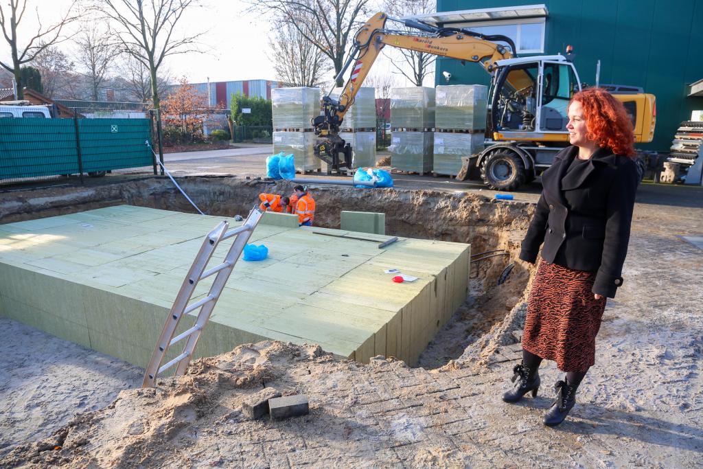 Foto: Directeur Susanne Everaerts neemt een kijkje bij de afkoppelwerkzaamheden van het bedrijf.