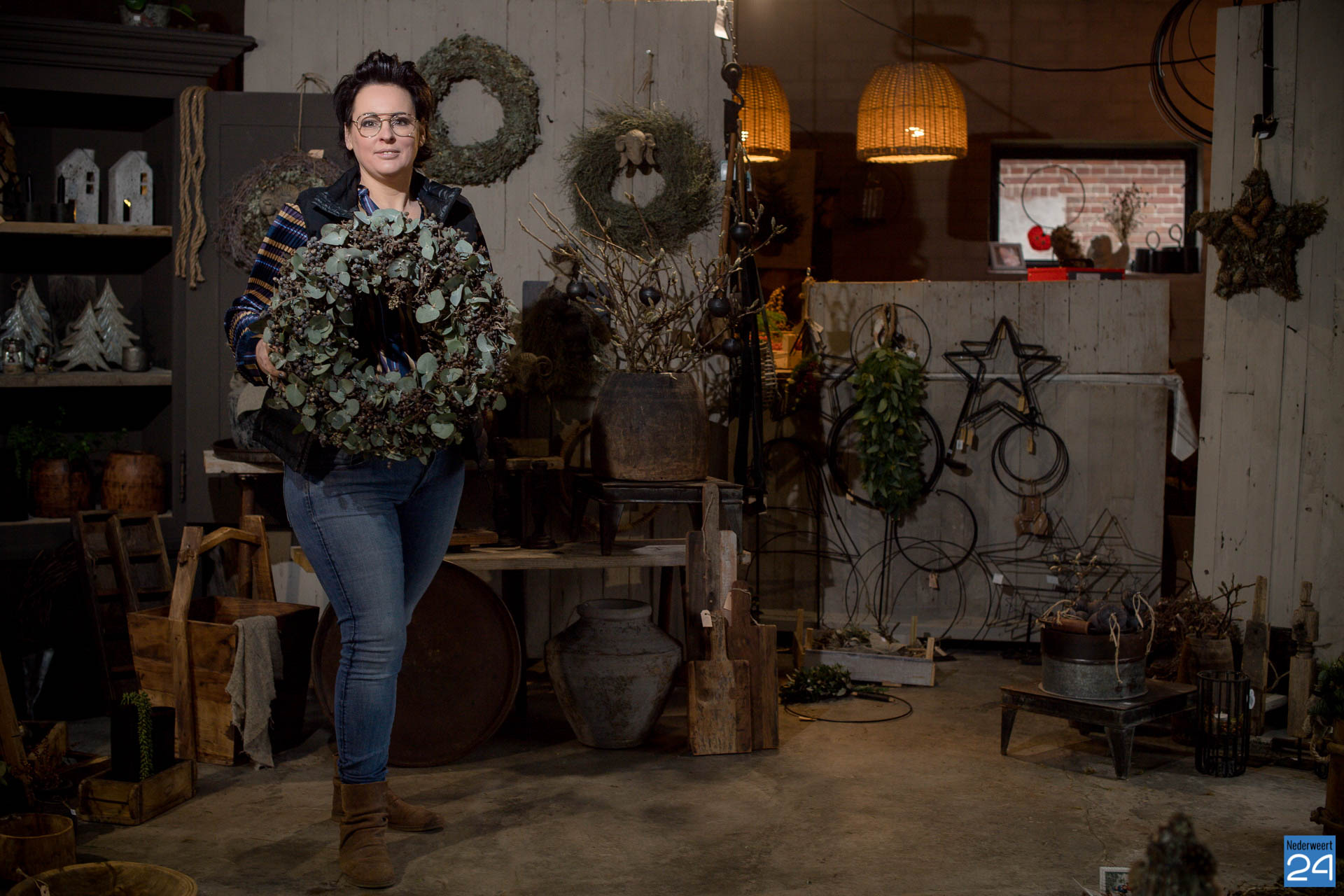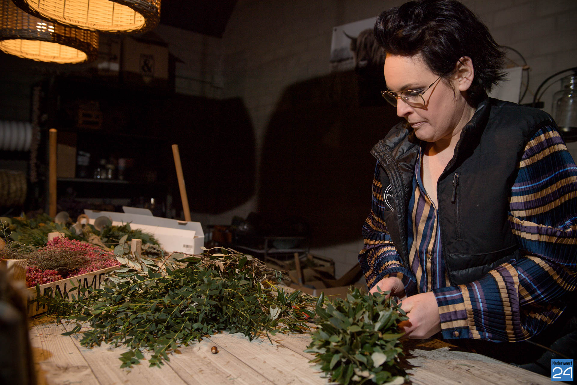 Haar man Harm effende voor haar het pad. Door extra arbeidsuren in te schakelen voor de kraamstal, kon Veerle haar ondernemersdroom verzilveren. De geboren Bocholtse volgde een masterclass bij een gerenommeerde decorateur in Zeeland en waagde de sprong in het diepe. In het tuinhuis naast de boerderij aan de Heijsterstraat maakt zij de mooiste decoraties in landelijke stijl; kransen en op touw gebonden groenwerken voor in huis of aan de deur. Elke vrijdagmiddag, zaterdag en op afspraak staat de deur open. “Het voelt heerlijk en de zaken gaan goed. Zodra het coronavirus straks onder controle is, ga ik ook weer workshops geven”, glundert Veerle.
