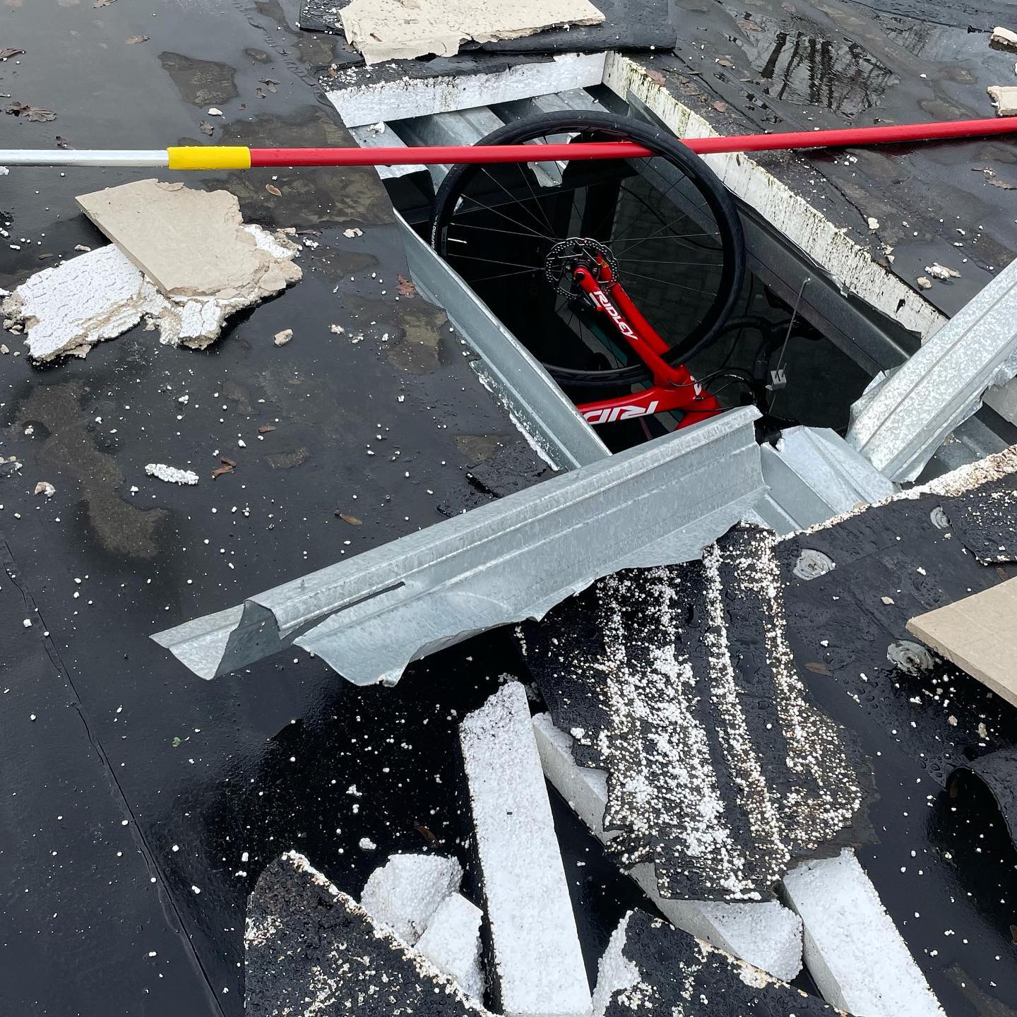De dieven hebben een grote ravage aangericht. Er is een groot gat ontstaan in het dak van de showroom. De inbraak vond plaats rond de klok van half 1. De dieven zijn verstoord door het alarmsysteem in de zaak.