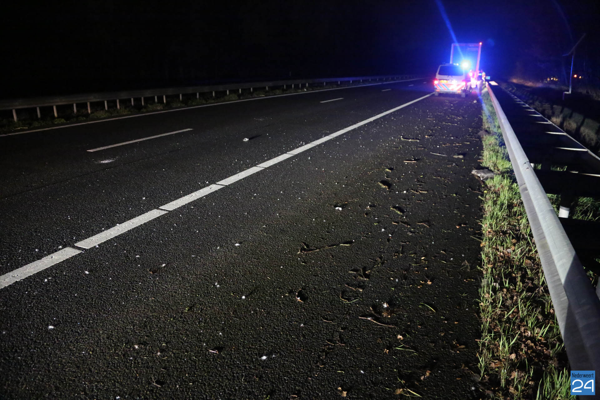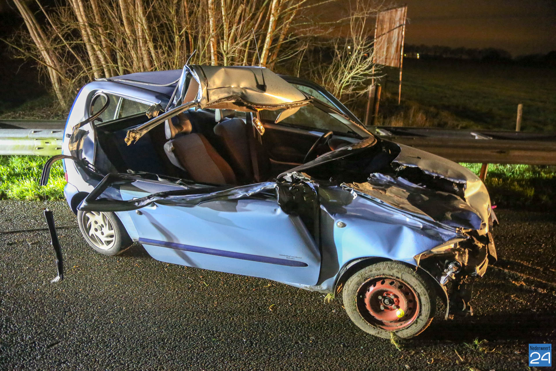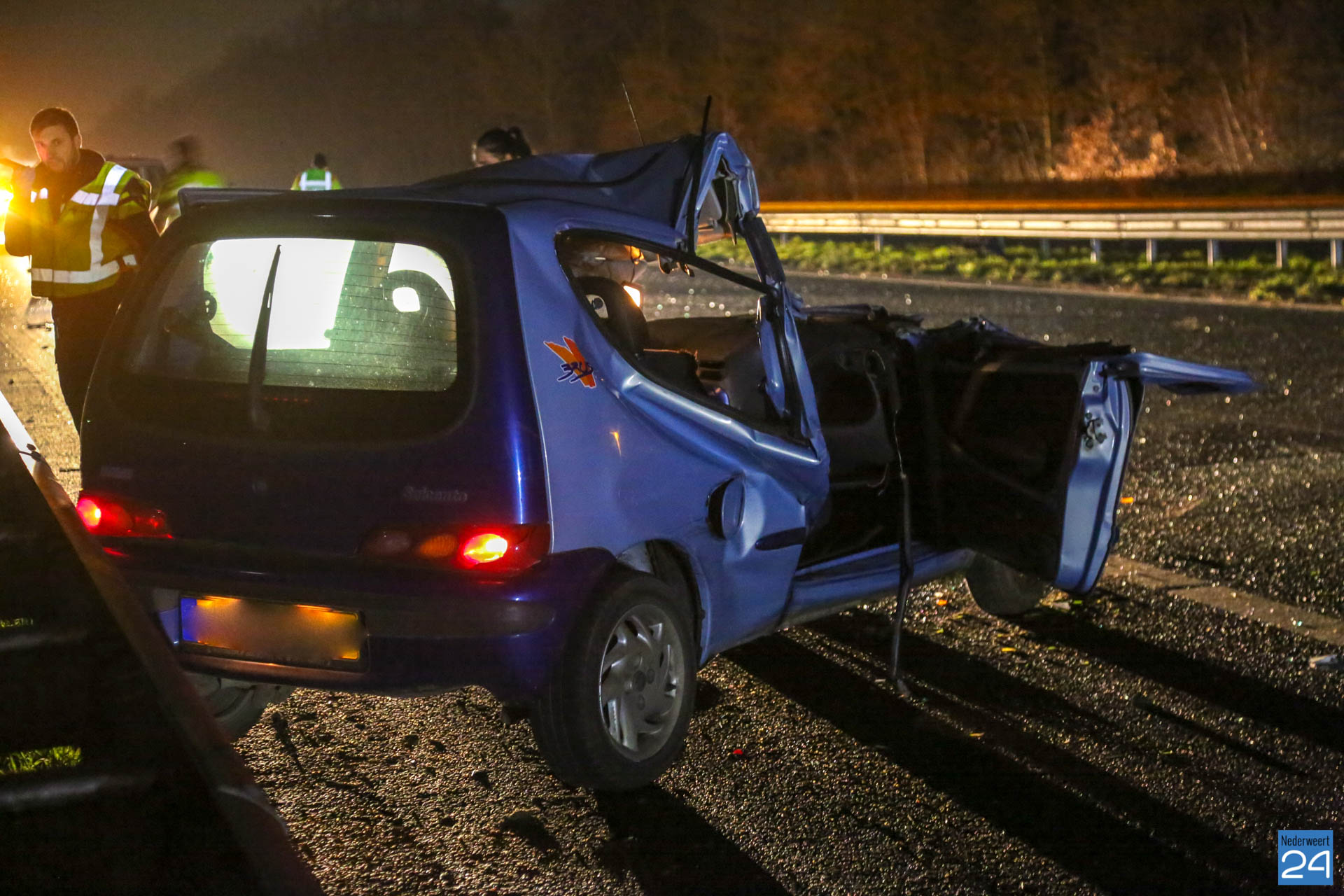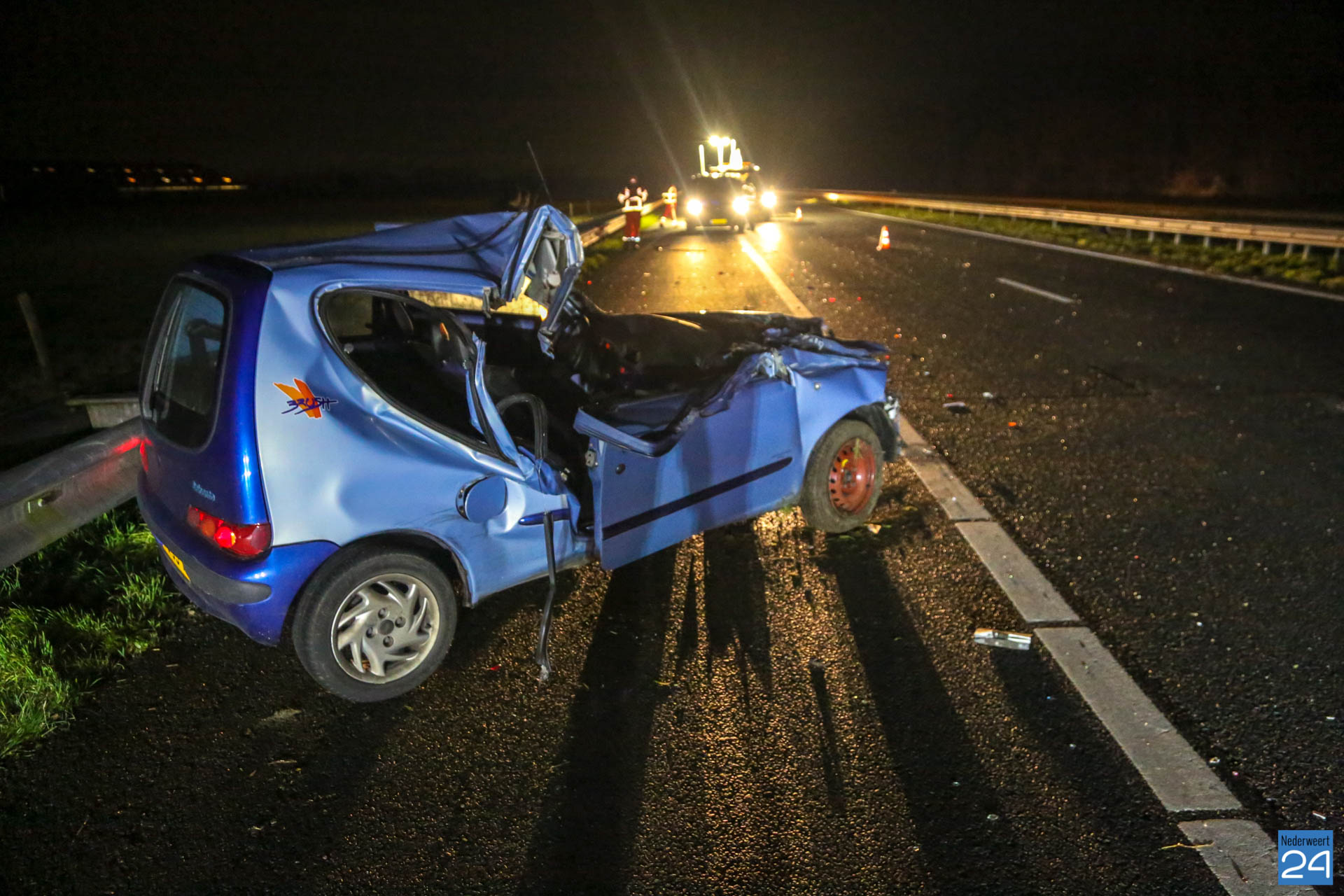 Eén rijstrook werd tijdelijk afgesloten. De personenauto raakte zwaar beschadigd door de klap. Brokstukken werden op ongeveer 100 meter teruggevonden.