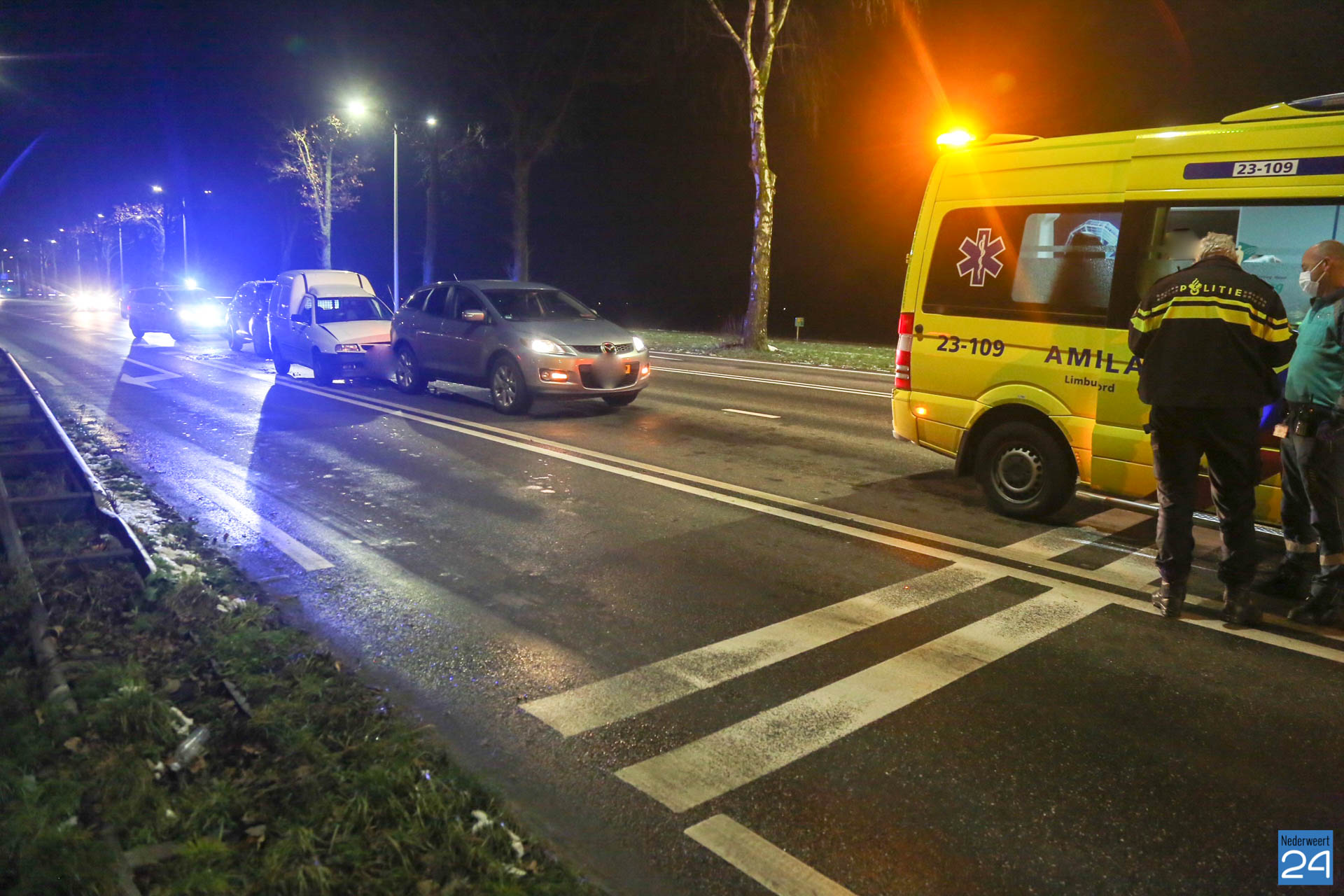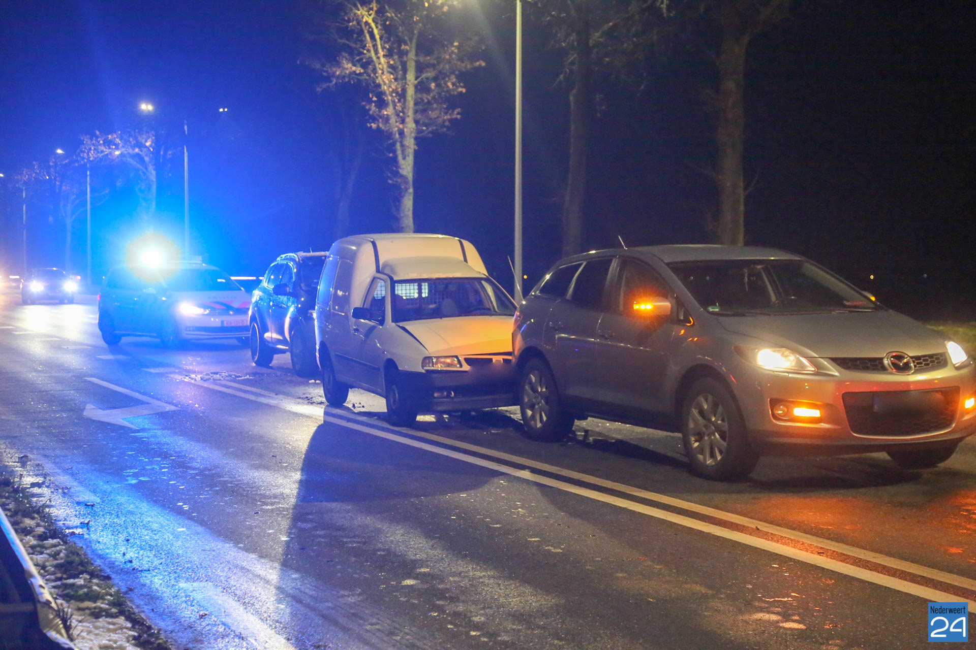 Het incident gebeurde bij de stoplichten nabij het A2-viaduct in de richting van Nederweert. De voertuigen botsten achterop elkaar. De voertuigen raakte beschadigd.