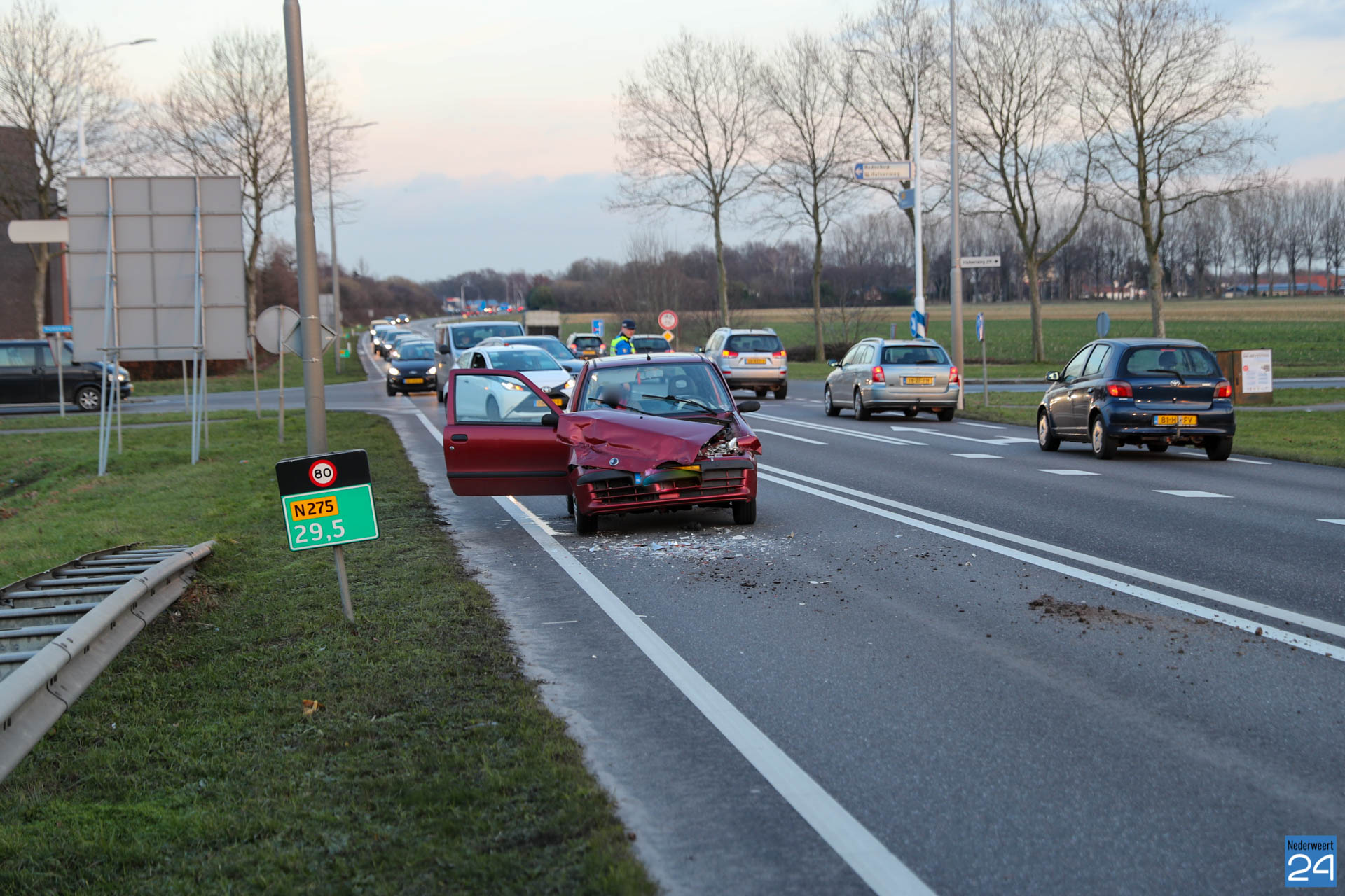 Twee voertuigen zijn dinsdagmiddag rond 17:00 uur met elkaar in botsing gekomen op de Randweg Zuid (N275) in Nederweert.
