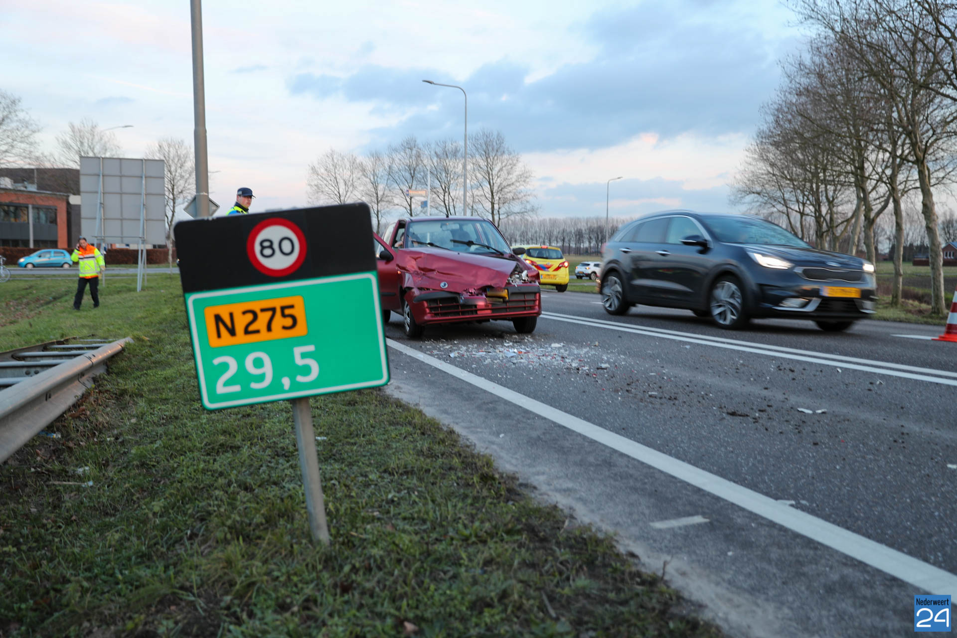 De persoon van de personenauto maakte een flinke klap maar raakte daarbij niet gewond. De bestuurder van de bestelbus kwam met de schikt vrij.
