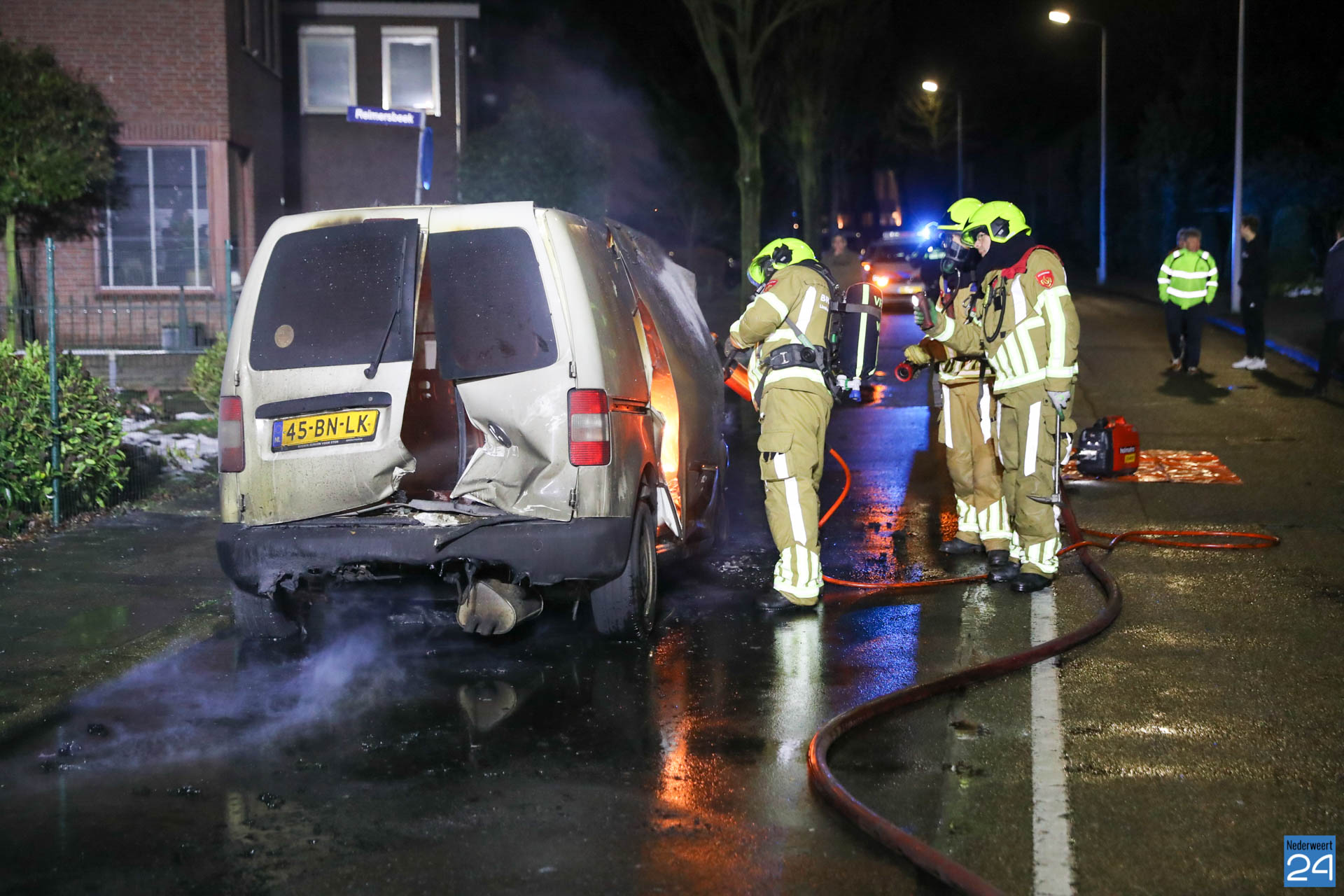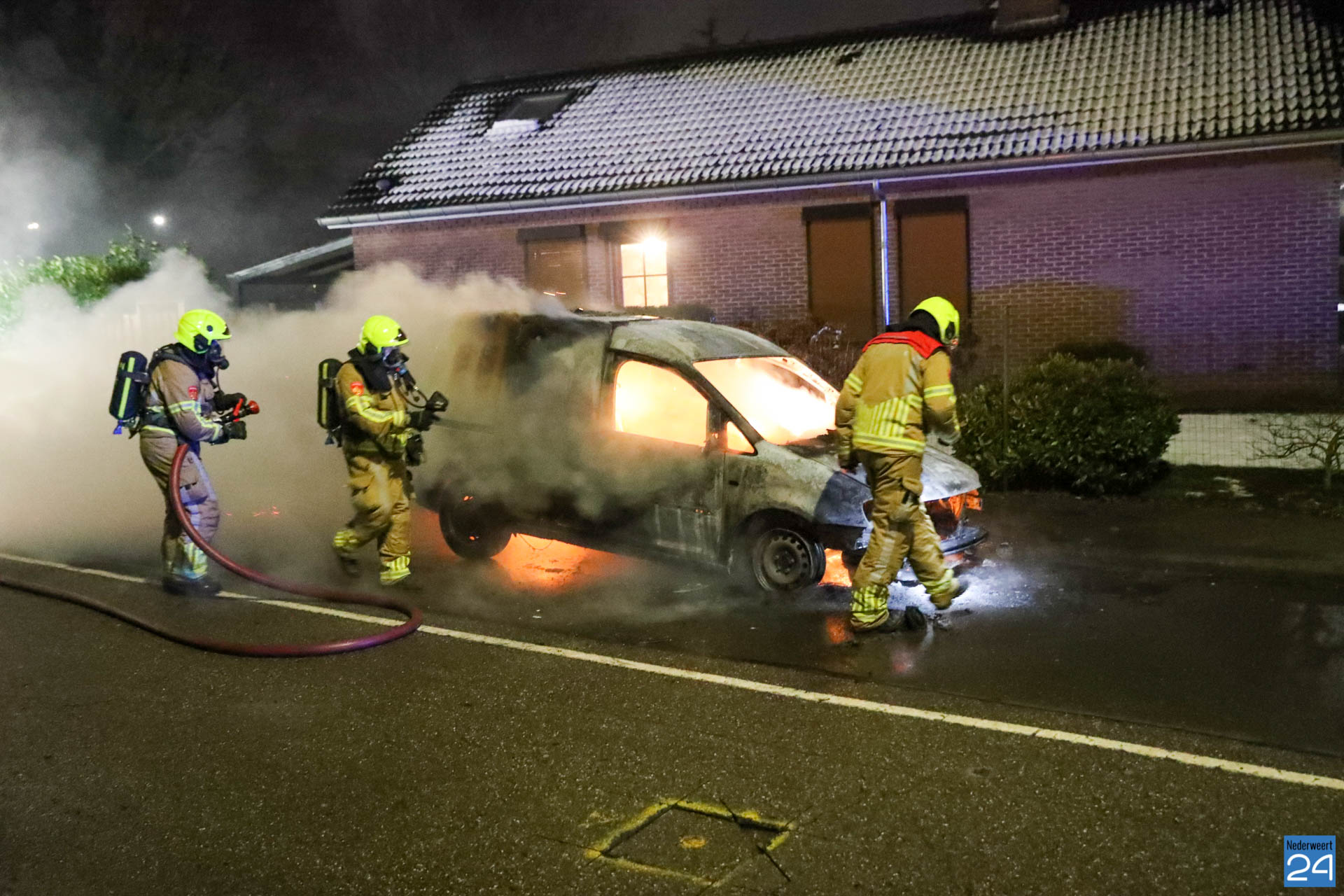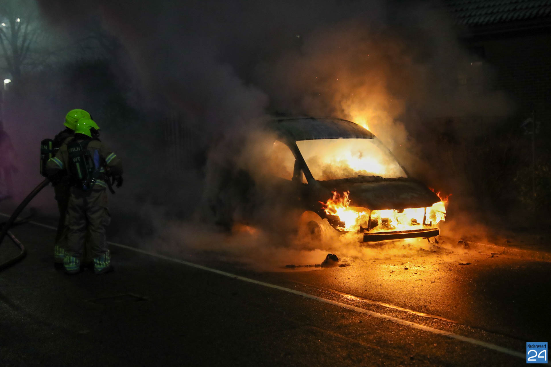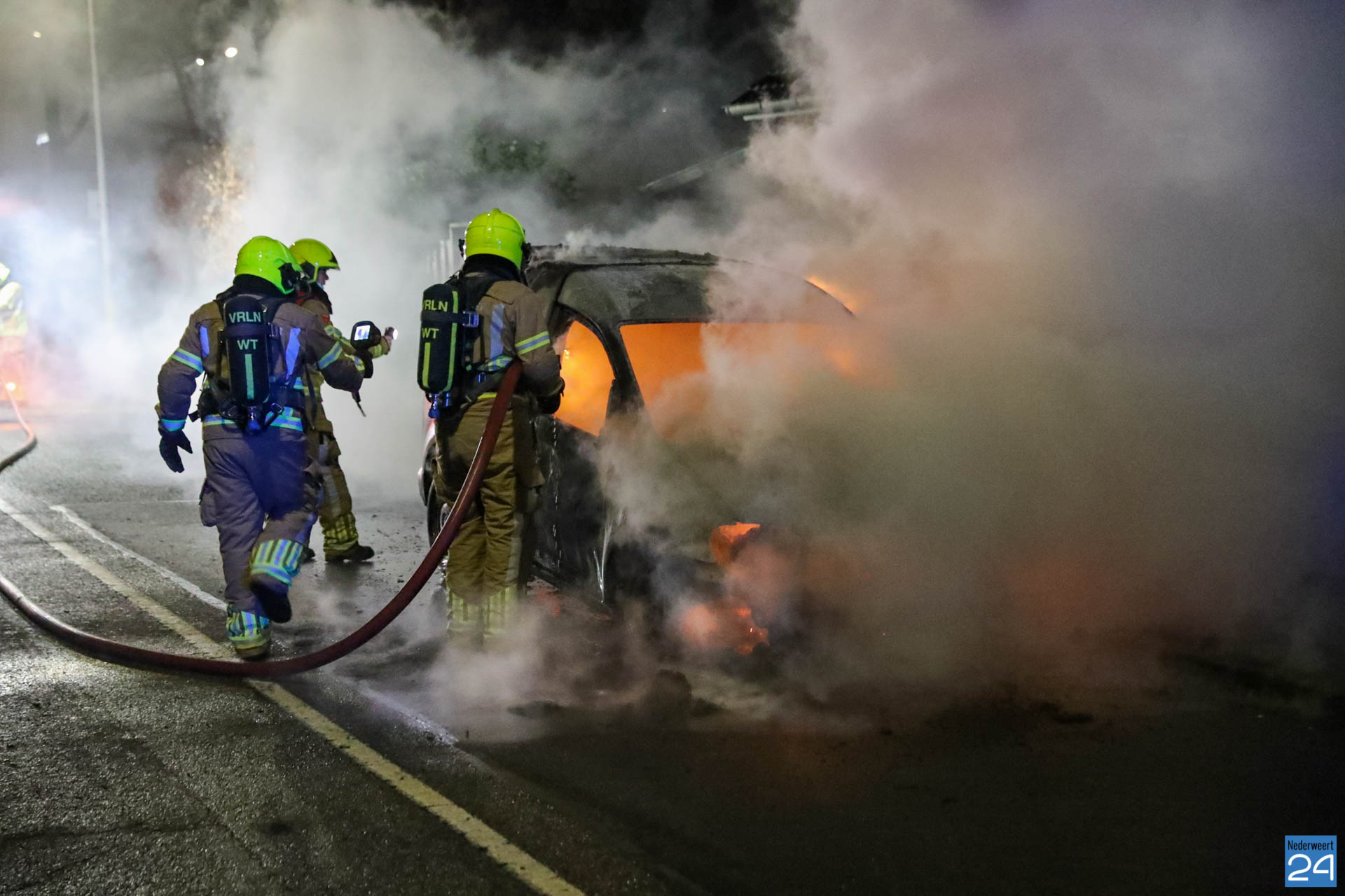 De brandweer van Weert was snel ter plaatse maar het voertuig stond al in lichter laaien. De brandstoftank lekte wat het blussen extra lastig maakte. Met speciaal gereedschap is de auto open geknipt en het voertuig uiteindelijk geblust.