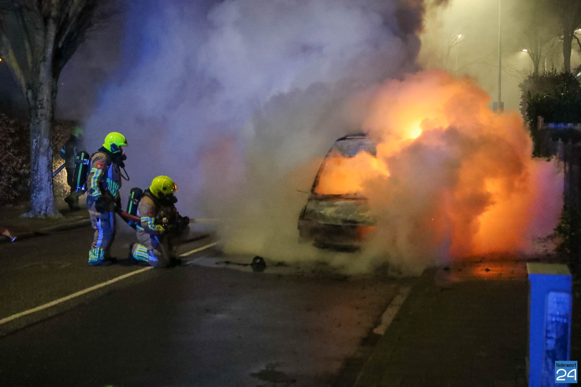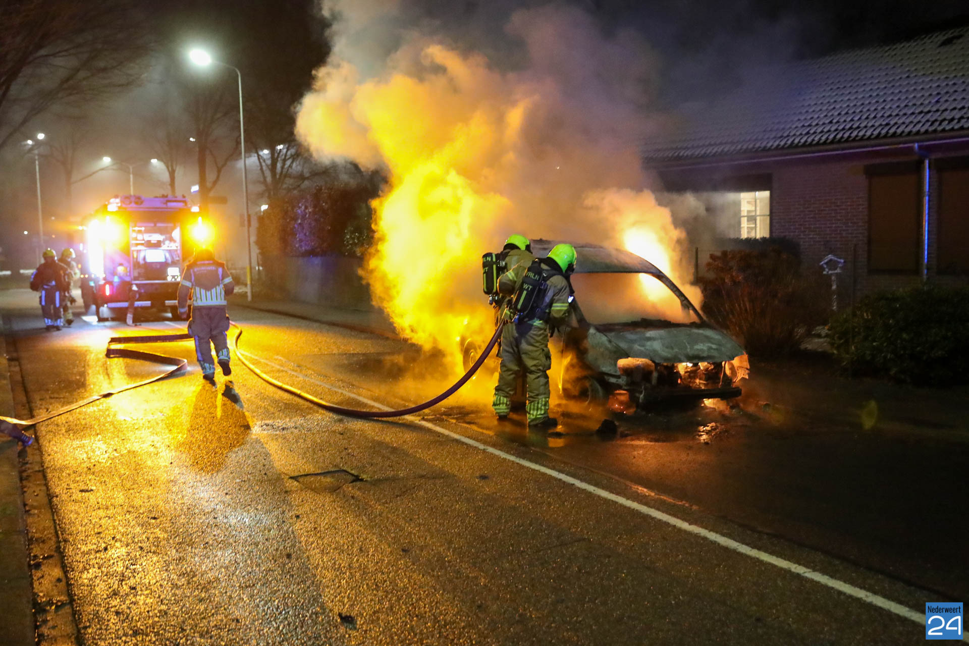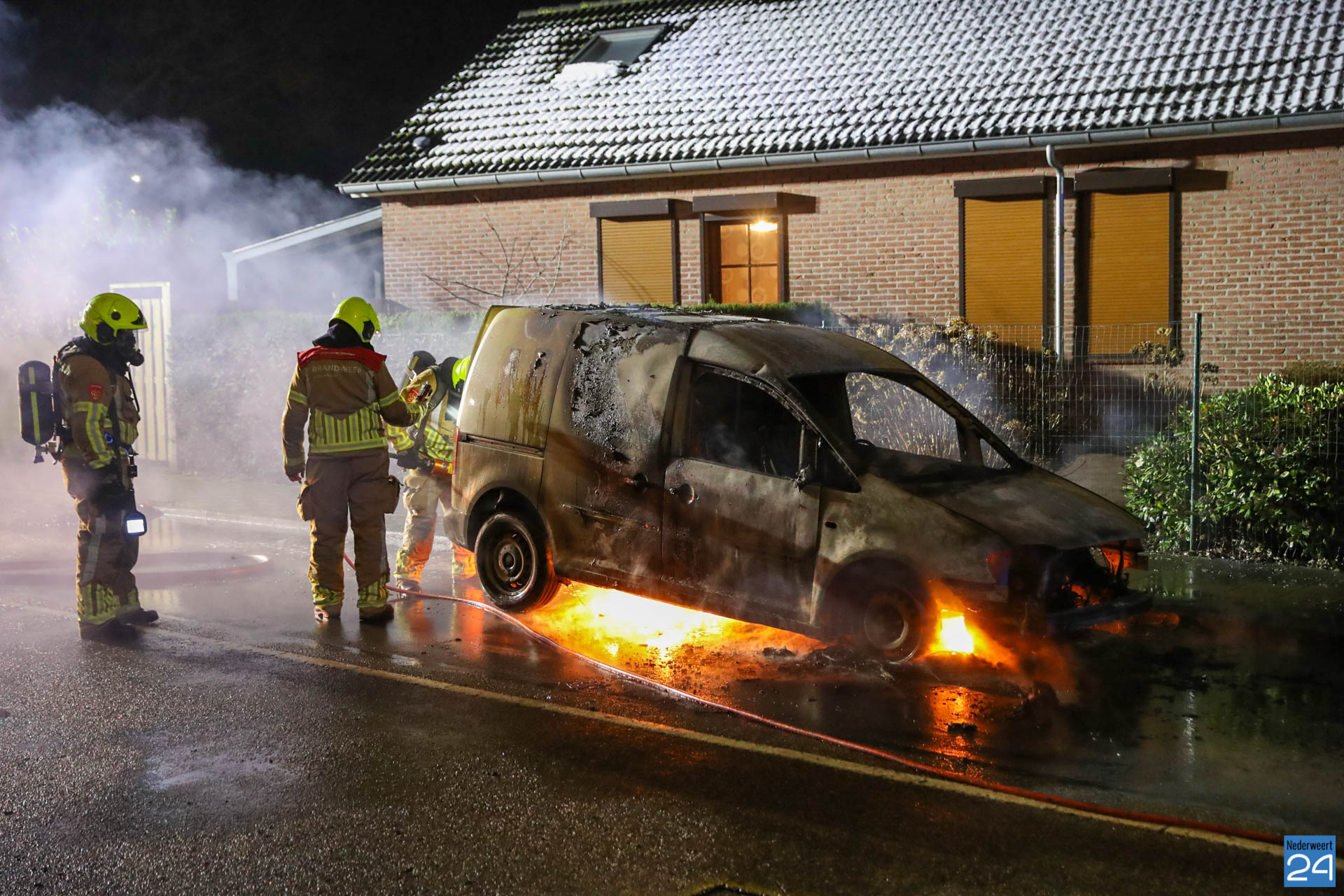 De brandweer van Weert was snel ter plaatse maar het voertuig stond al in lichter laaien. De brandstoftank lekte wat het blussen extra lastig maakte. Met speciaal gereedschap is de auto open geknipt en het voertuig uiteindelijk geblust.