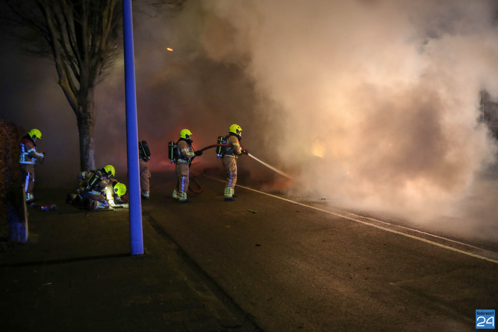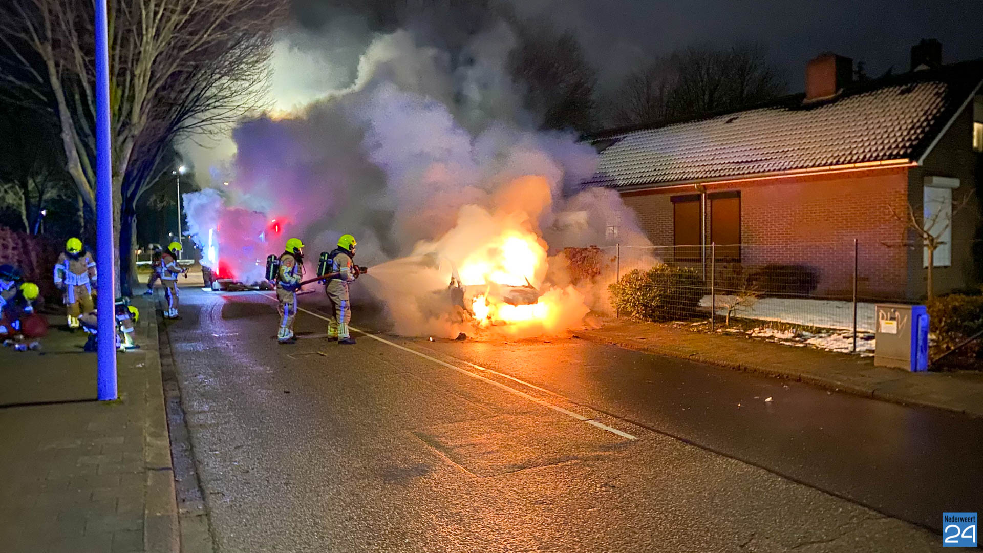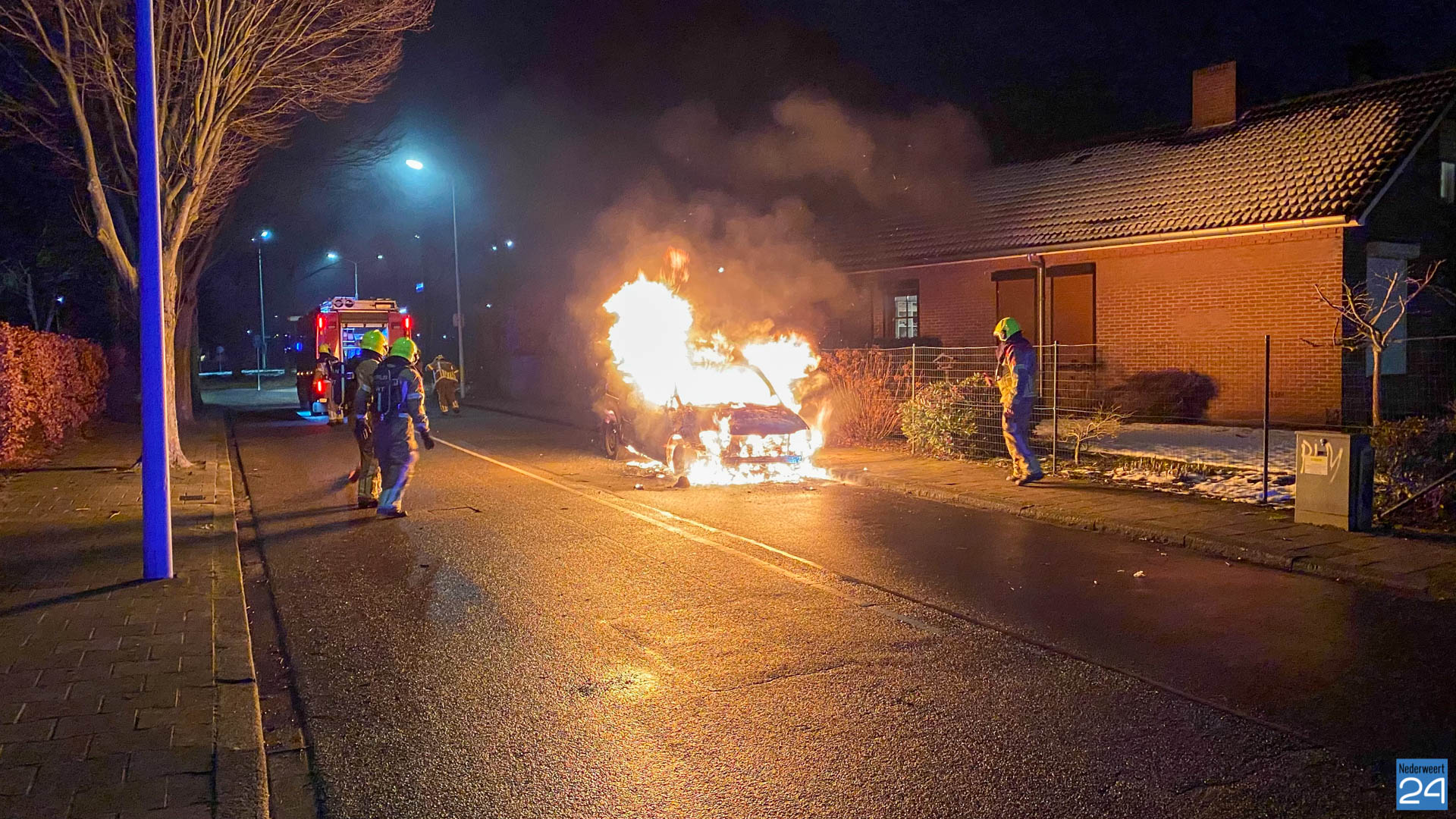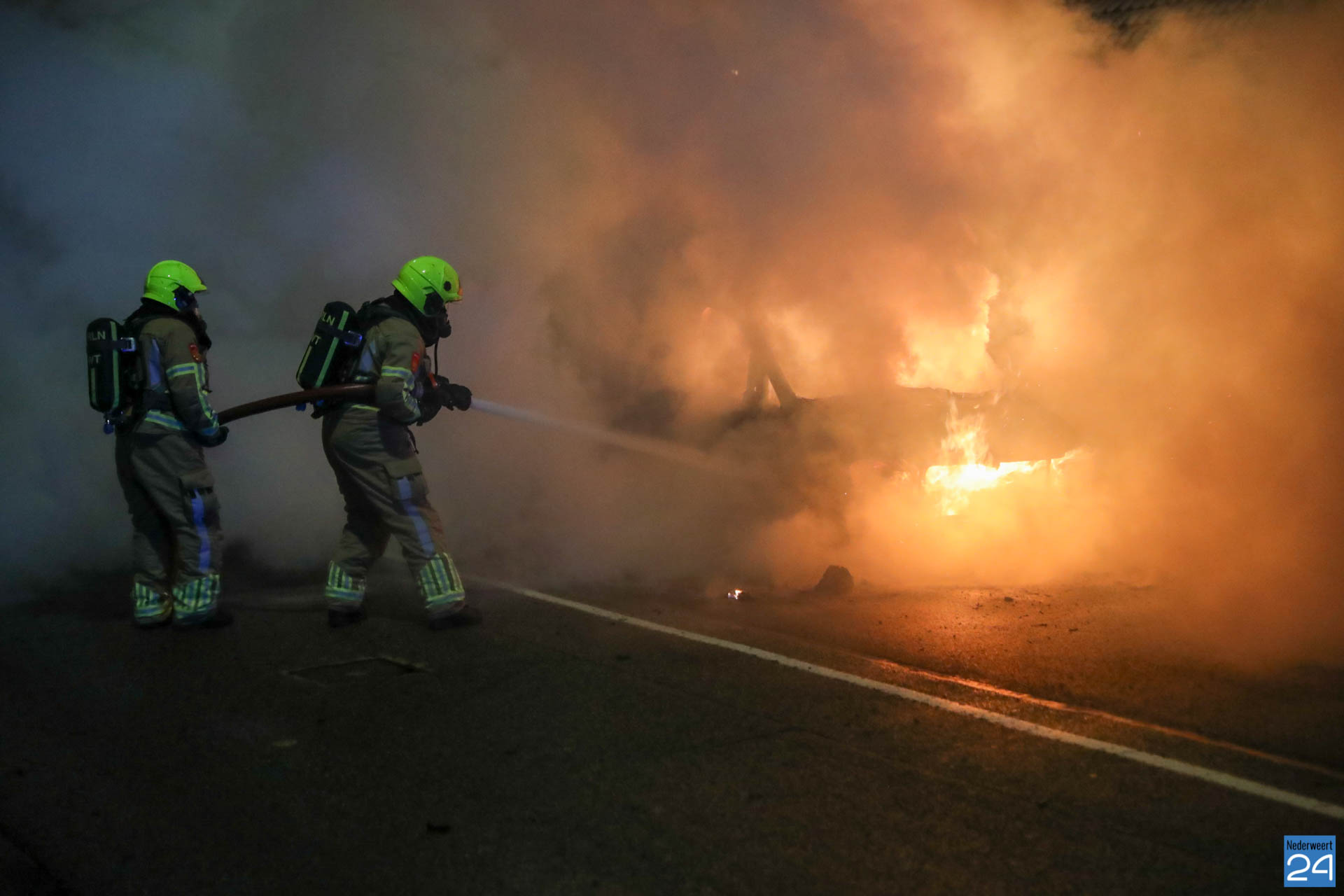 De brandweer van Weert was snel ter plaatse maar het voertuig stond al in lichter laaien. De brandstoftank lekte wat het blussen extra lastig maakte. Met speciaal gereedschap is de auto open geknipt en het voertuig uiteindelijk geblust.