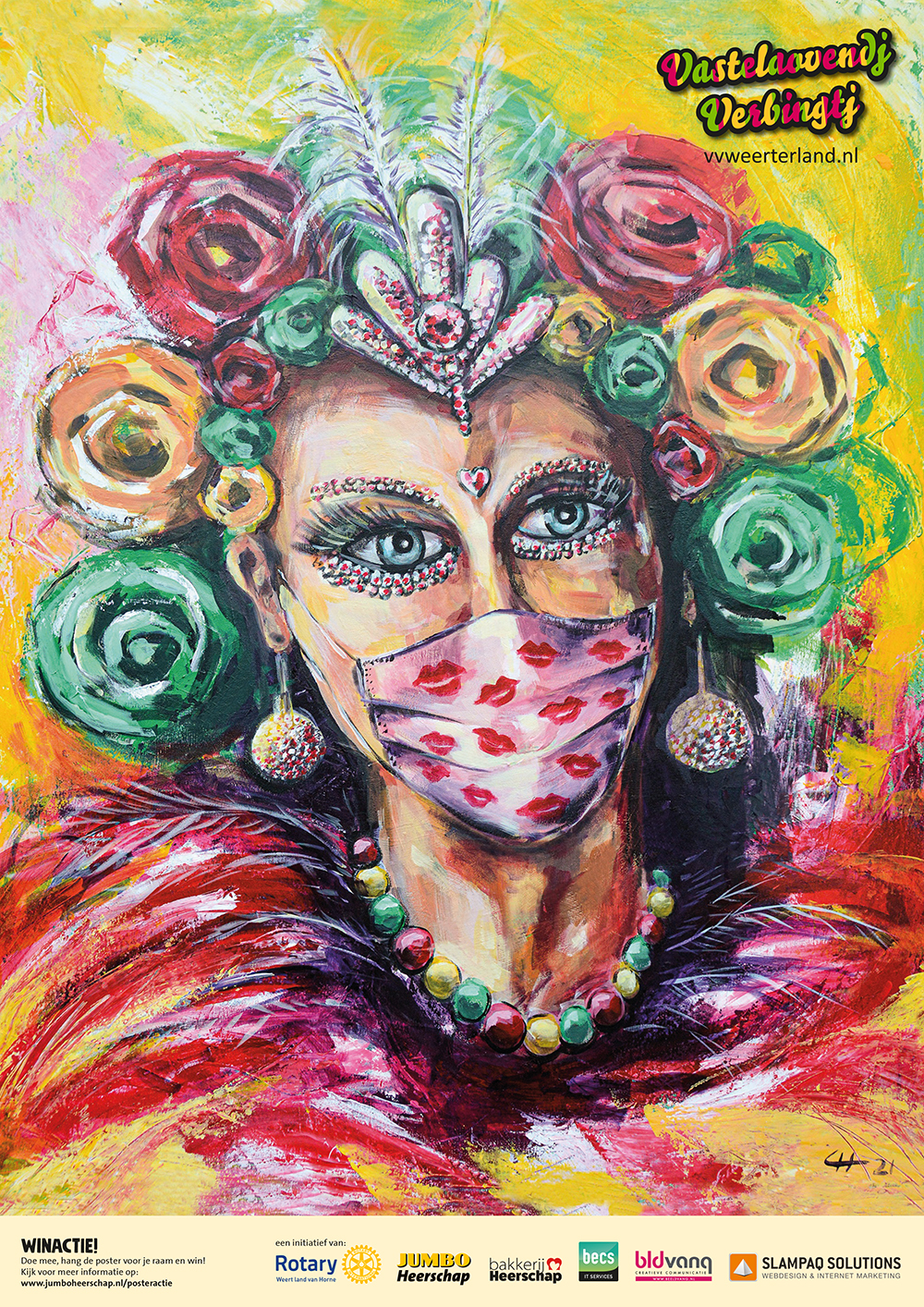 De posteractie maakt deel uit van het initiatief Vastelaovendj verbingtj het Weerterland (vvweerterland.nl). Dit initiatief is gestart om het vastelaovendj gevoel levend te houden en de vastelaovendj verenigingen in het Weerterland te steunen. Het vastelaovendj gezicht Weerterland 2021 is een belangrijk onderdeel om het vastelaovendj gevoel te delen. Naast deze verkiezing heeft Serviceclub Rotary Weert land van Horne in samenwerking met de vastelaovendj verenigingen in het Weerterland is de website vvweerterland.nl gelanceerd. Deze onafhankelijke website biedt bezoekers doorlopend beelden van vastelaovendj gerelateerde activiteiten. Denk hierbij aan videobeelden van oude bonte avonden, optredens, optochten, etc. Maar ook aan nieuwe (nog niet eerder getoonde) video’s van vastelaovendj artiesten of andere leuke optredens die georganiseerd worden door de vastelaovendj verenigingen in het Weerterland. Vvweerterland.nl is een soort Netflix voor Vastelaovendj! Een verzamelplaats voor de leukste vastelaovendj inhoud. Lekker makkelijk en overzichtelijk op één plek.