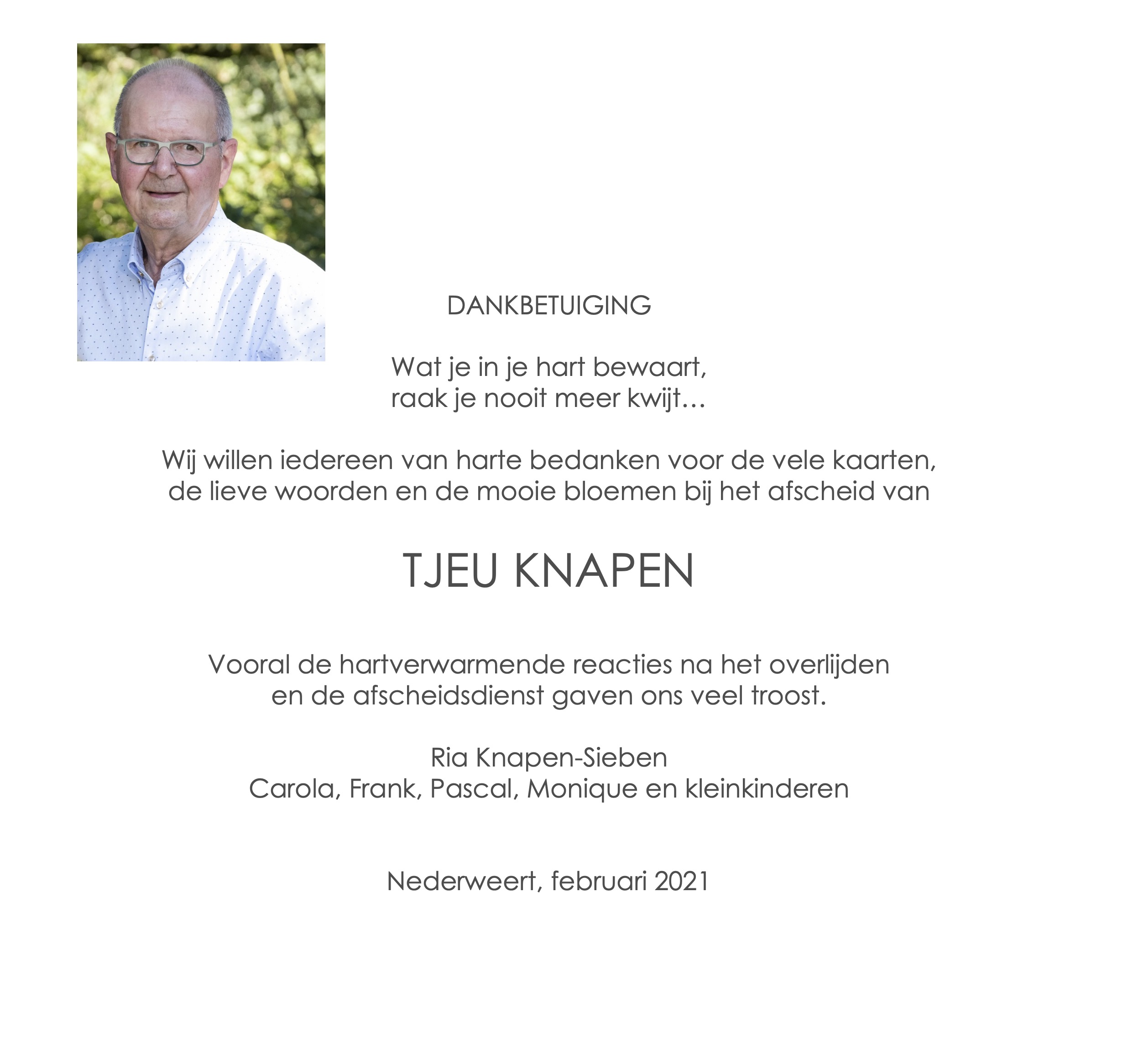 Dankbetuiging Tjeu Knapen†