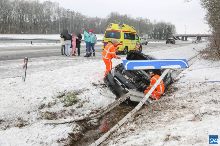 De personenauto is door onbekende reden van de weg geraakt en ramde hierbij het bord dat naast de A2 in noordelijk richting bij Kelpen-Oler stond. De personenauto, met hierin meerdere personen, kwam vervolgens tot stilstand in de greppel langs de A2. Mogelijk speelde het winterse weer hierbij een rol.