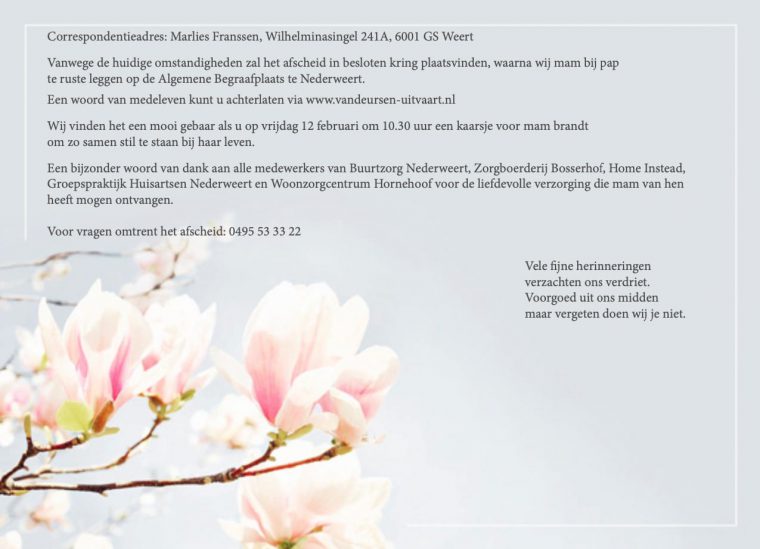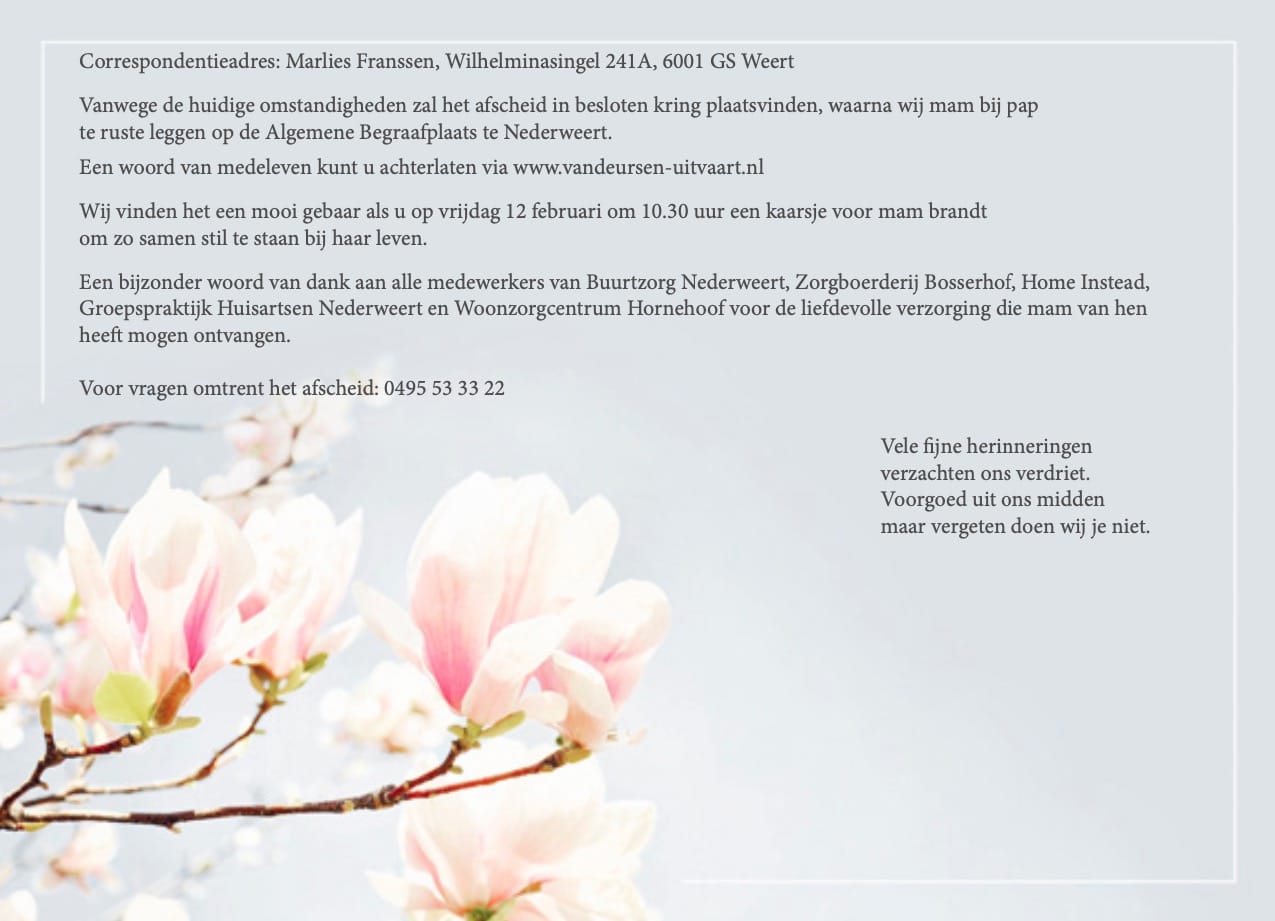 Gecondoleerd familie Franssen met het overlijden van jullie moeder, schoonmoeder, oma en grootmoeder