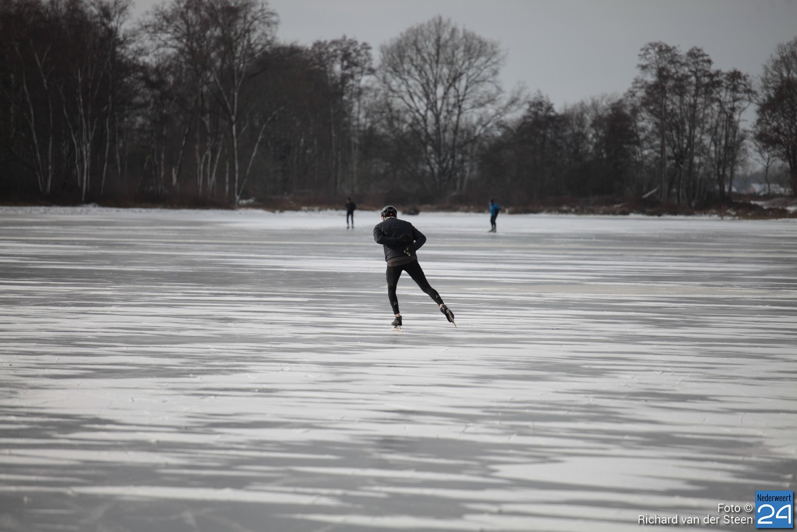 Woensdagmiddag werd 7 cm gemeten. Donderdag wordt het ijs met een veegmachine schoongeveegd. Er kan dus geschaatst worden, maar vanaf donderdag is het ijs veilig toegankelijk.