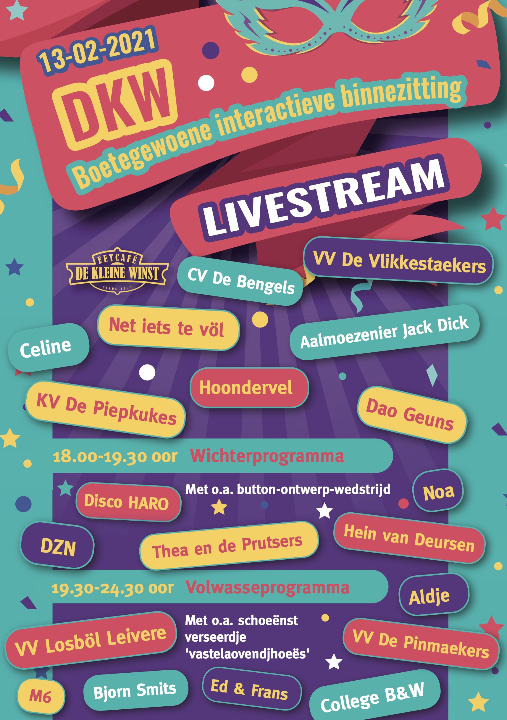 Zaterdag 13 februari vanaf 18.00 uur lol en plezeer “vanuit” cafe de kleine winst.