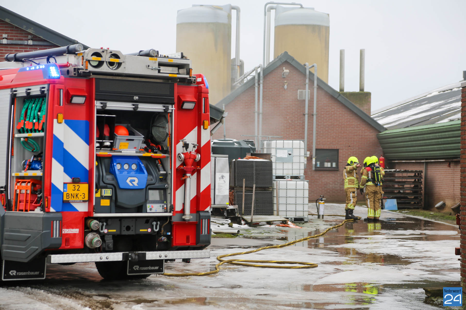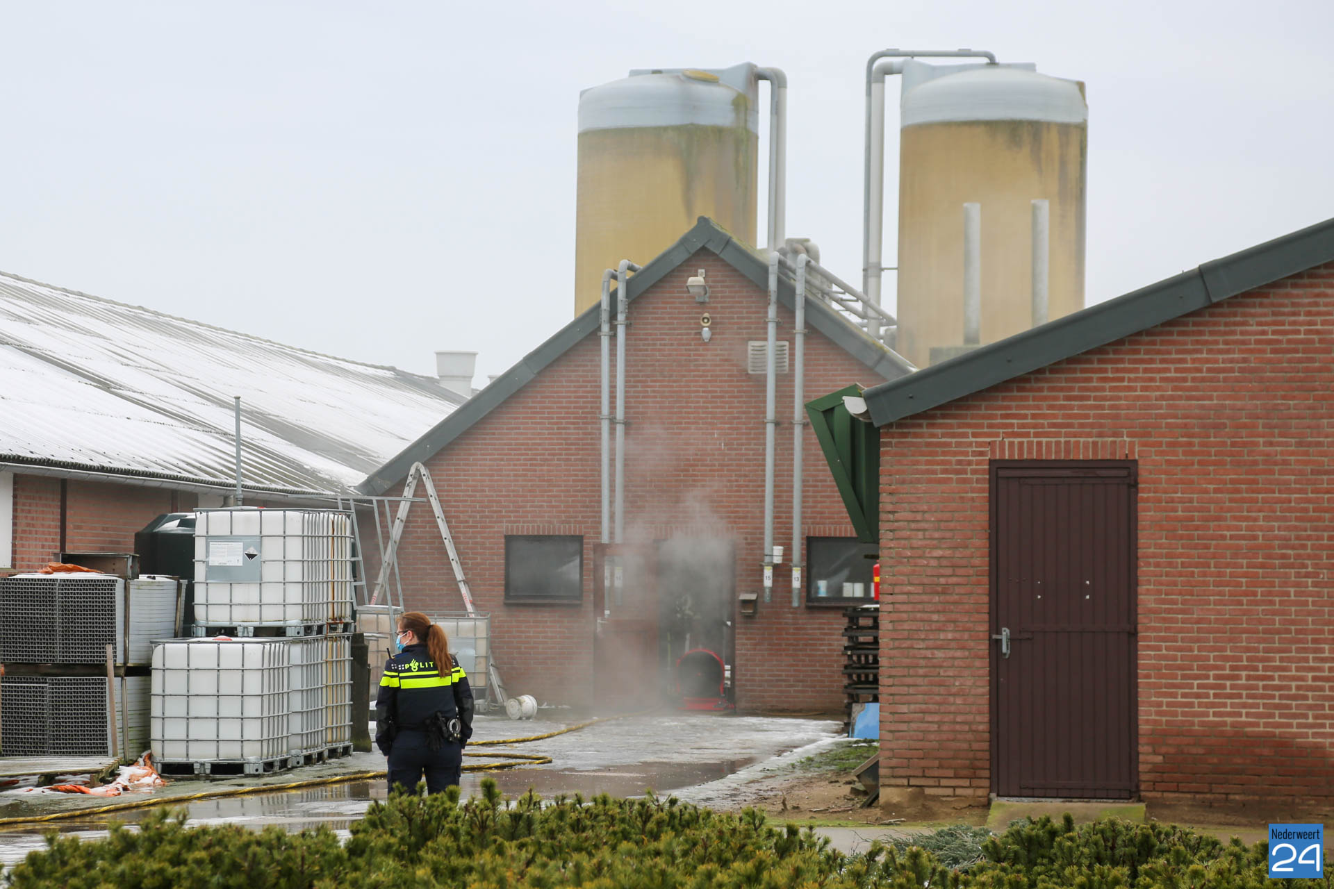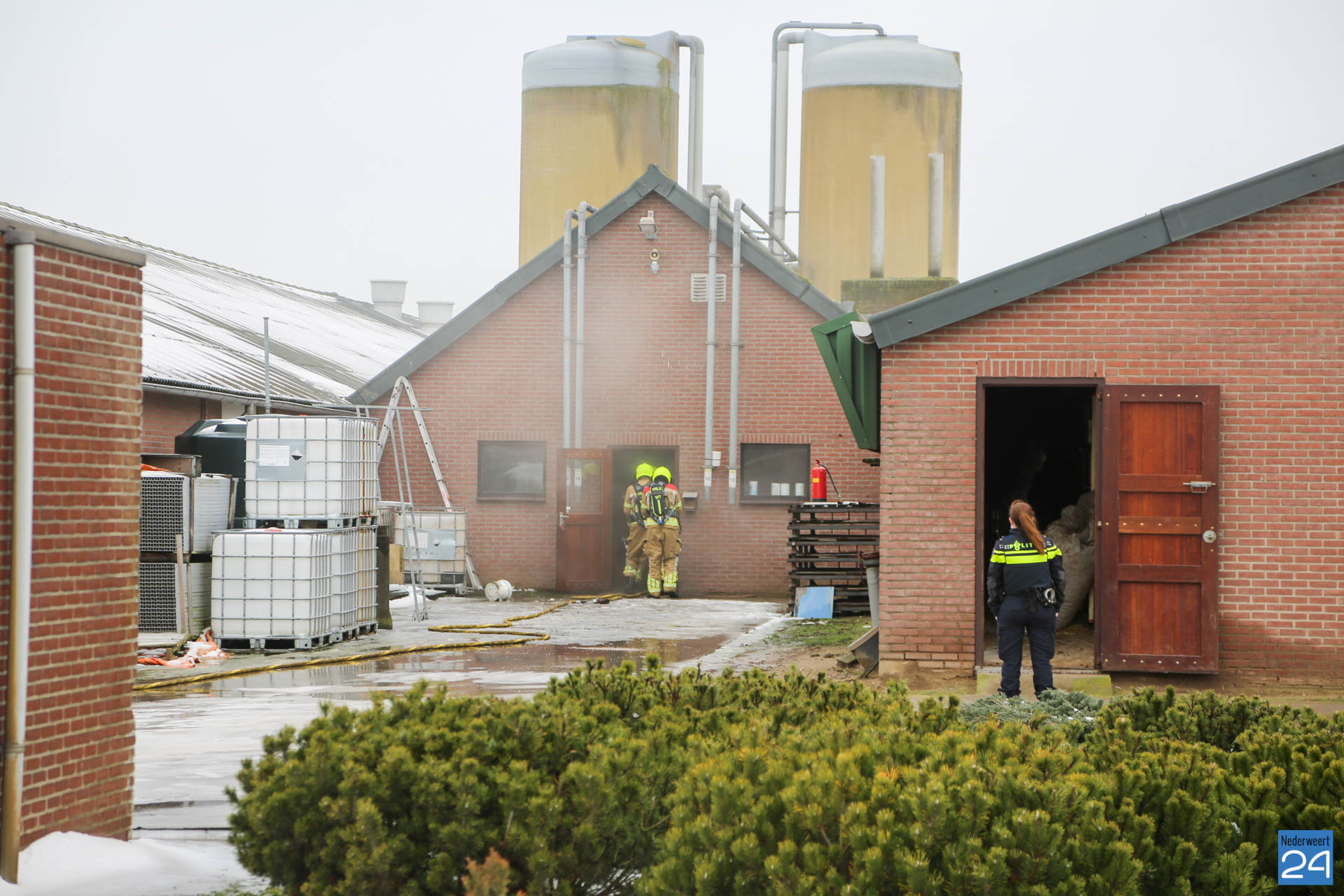 De brandweer van Grathem wist het vuur snel te bestrijden. De politie sloot ondertussen de weg af. Bij de brand ontstond enige rookontwikkeling binnen het bedrijf.