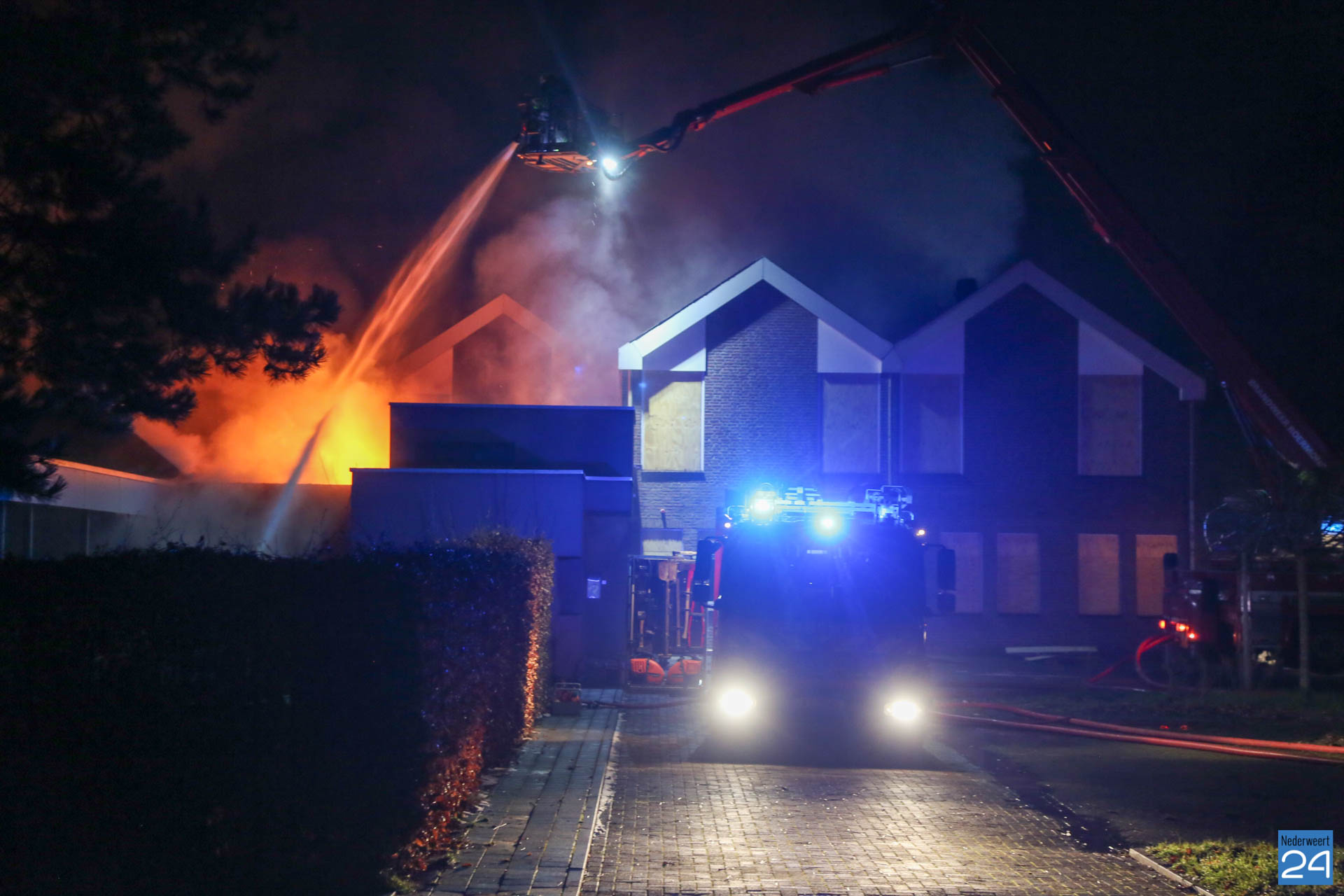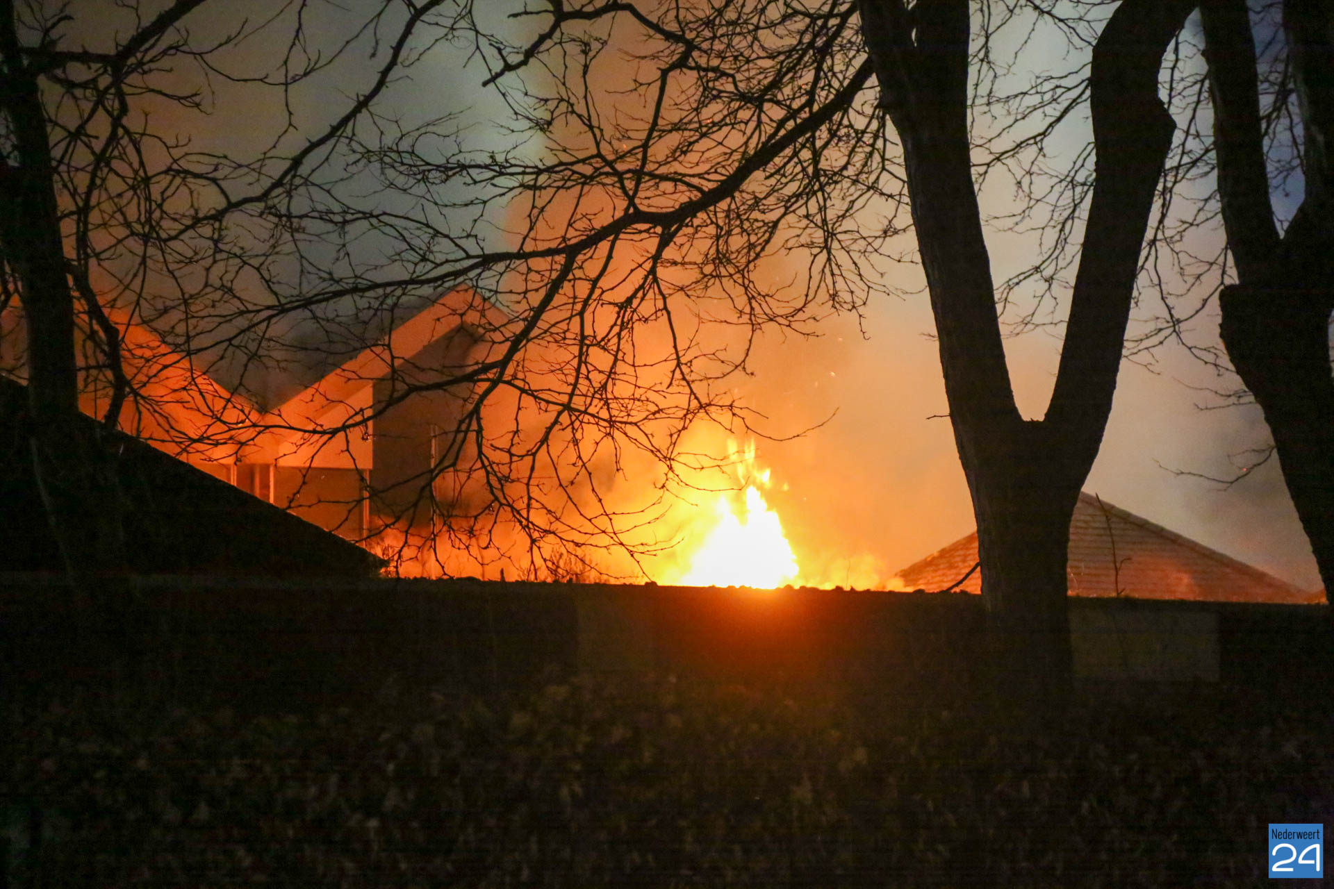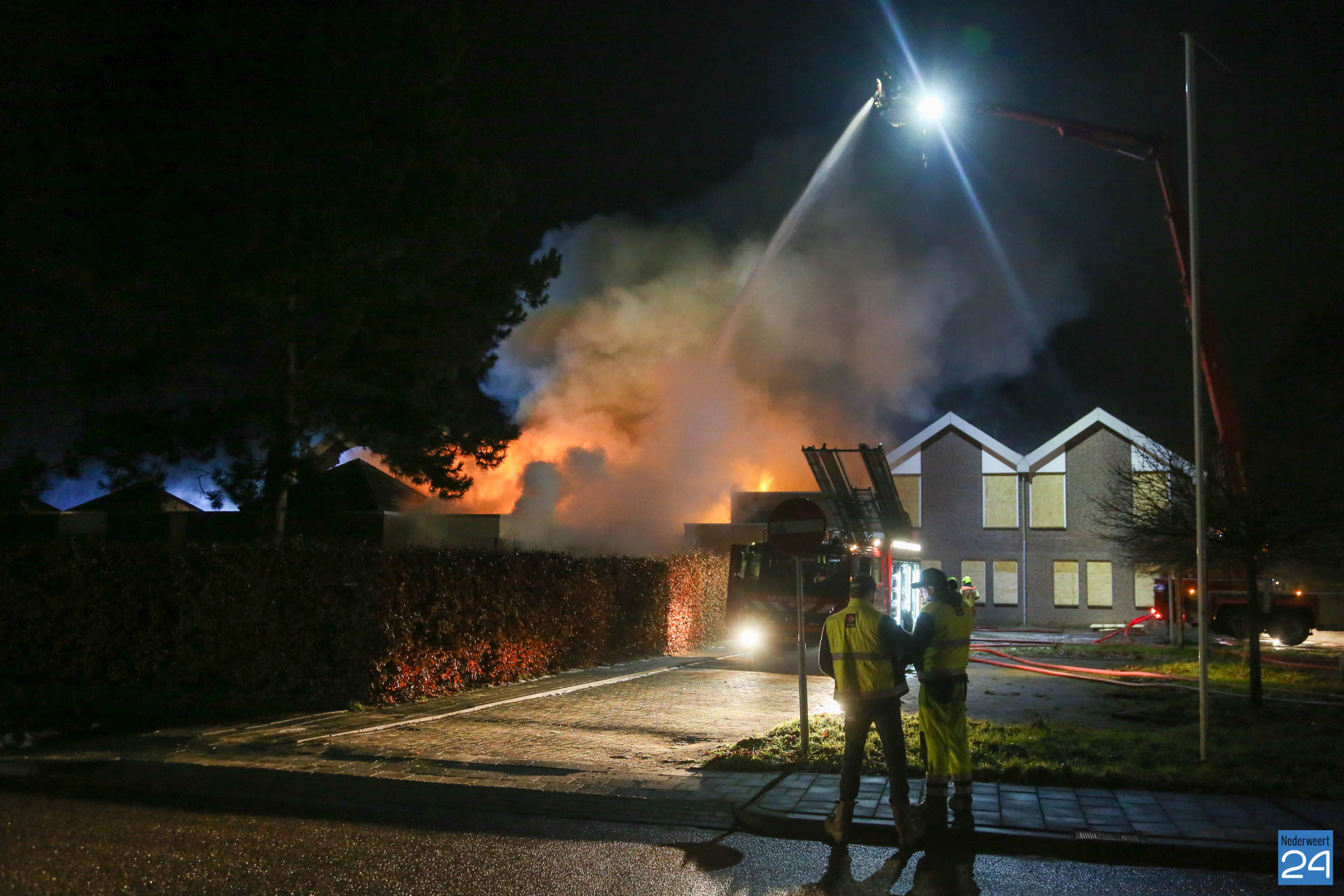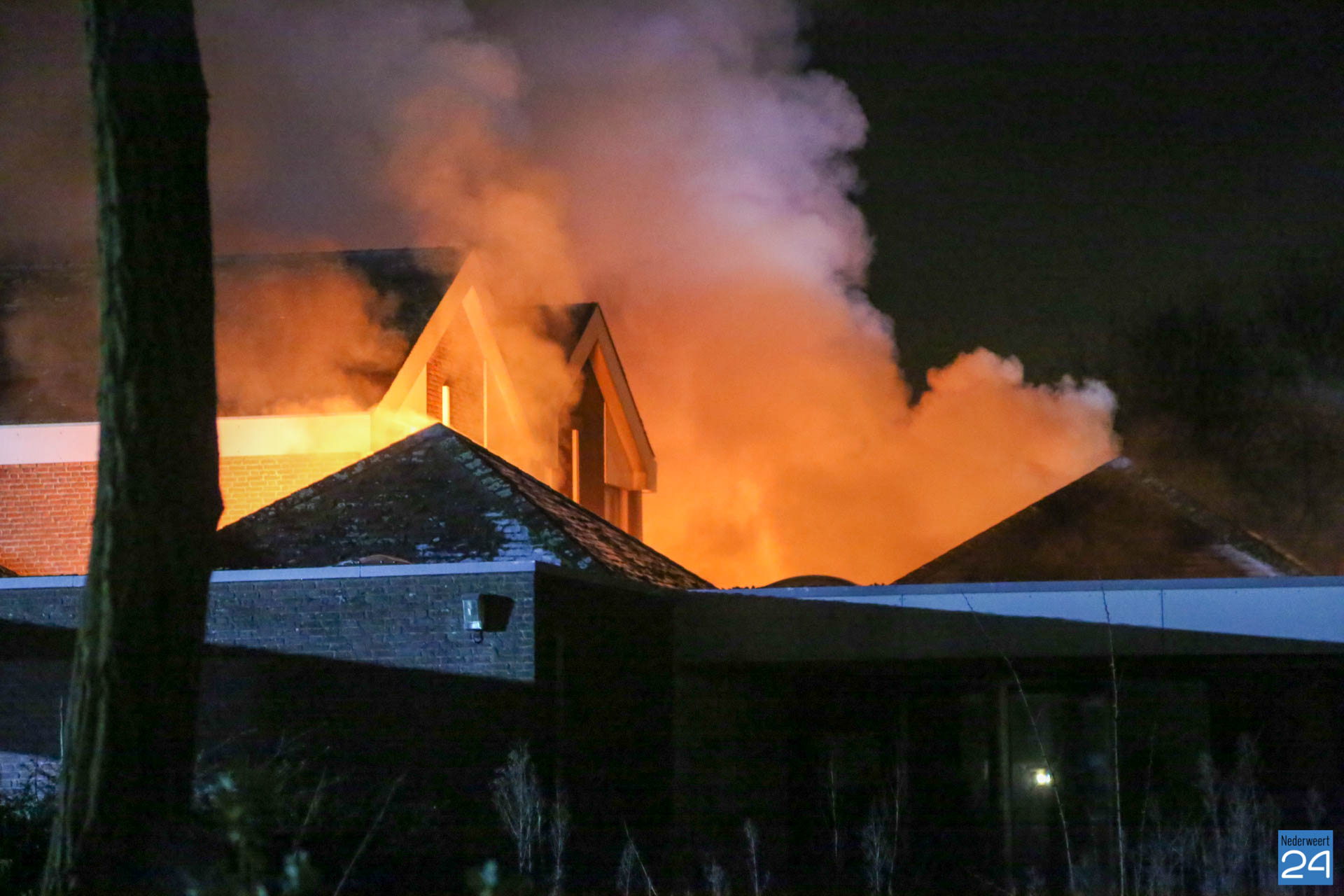 Maandagavond heeft er een zeer grote brand gewoed in een voormalig praktijkgebouw van de Mutsaersstichting aan de Thornerweg in Wessem.