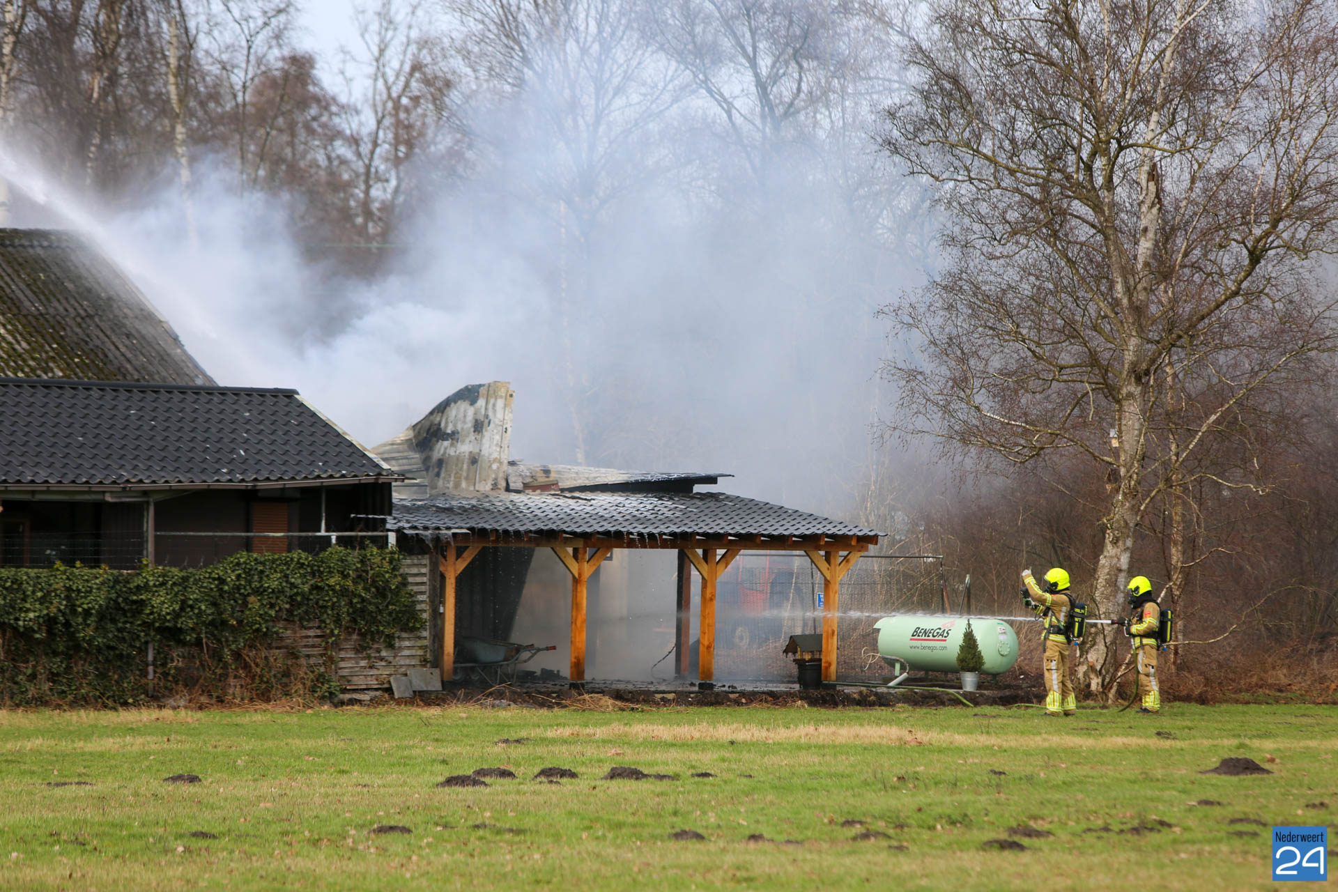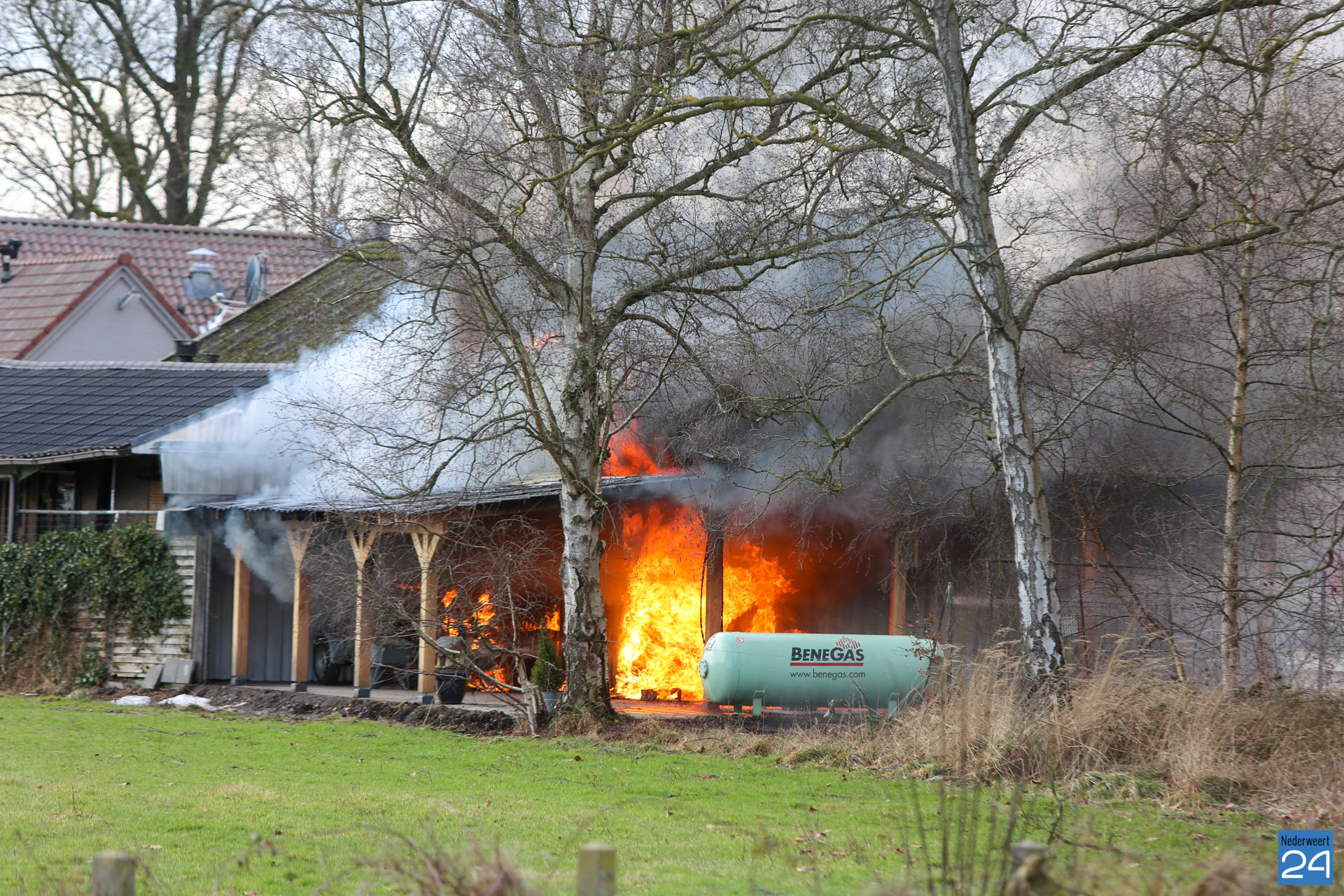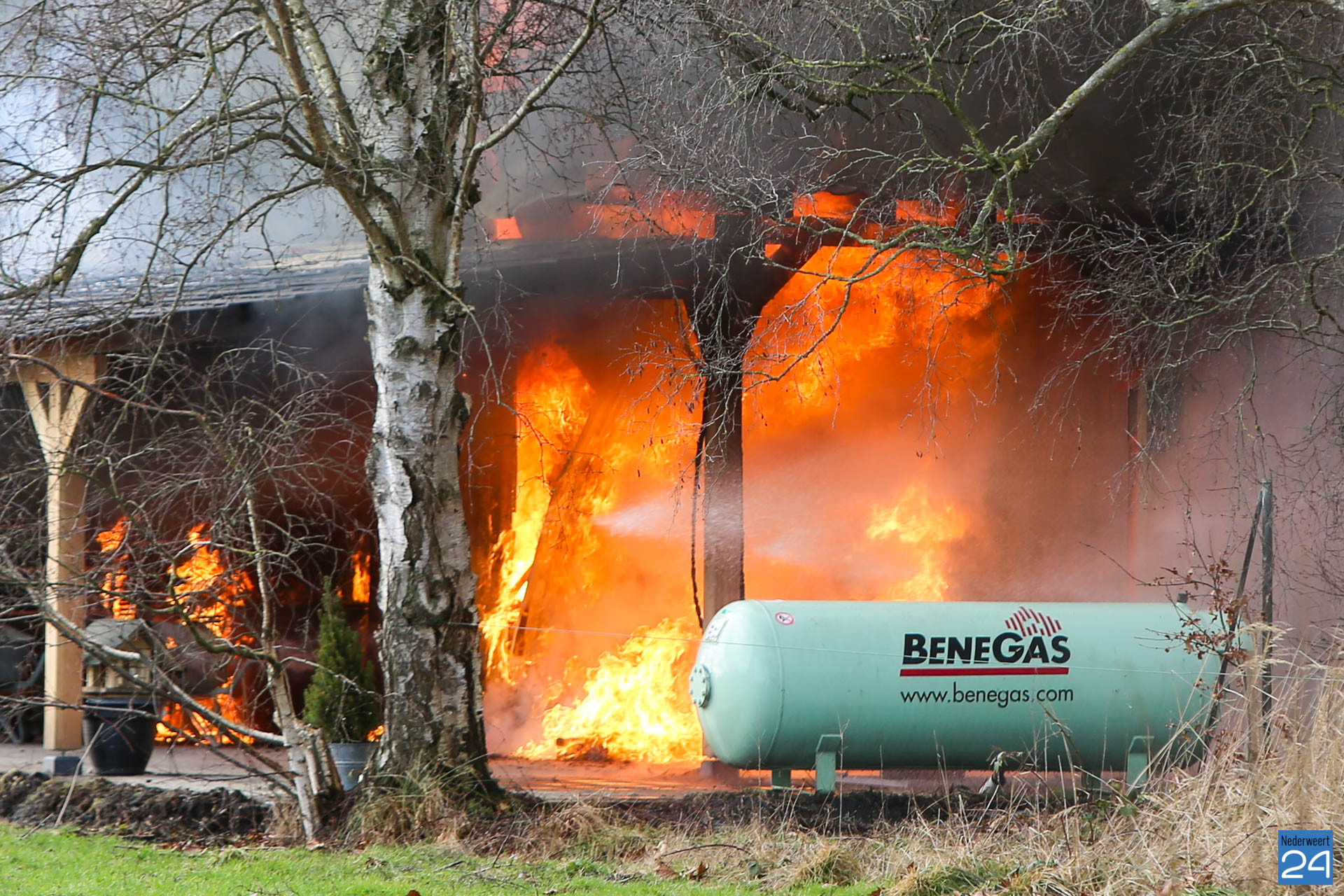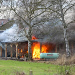 De brandweer is met groot materieel uitgerukt om het vuur te bestrijden. Als snel werd opgeschaald naar ‘middel brand’. Met deze opschaling komen meerdere blusvoertuigen ter plaatse. De brandweer heeft de gastank gekoeld. Niemand raakte gewond. De vlammen zijn door de wand van de schuur geslagen, maar door snel ingrijpen is de brand in de schuur beperkt gebleven. Het asbest dak is nog intact en heeft geen gevaar voor de omgeving opgeleverd. De aangrenzende woning heeft niets meegekregen van de brand.