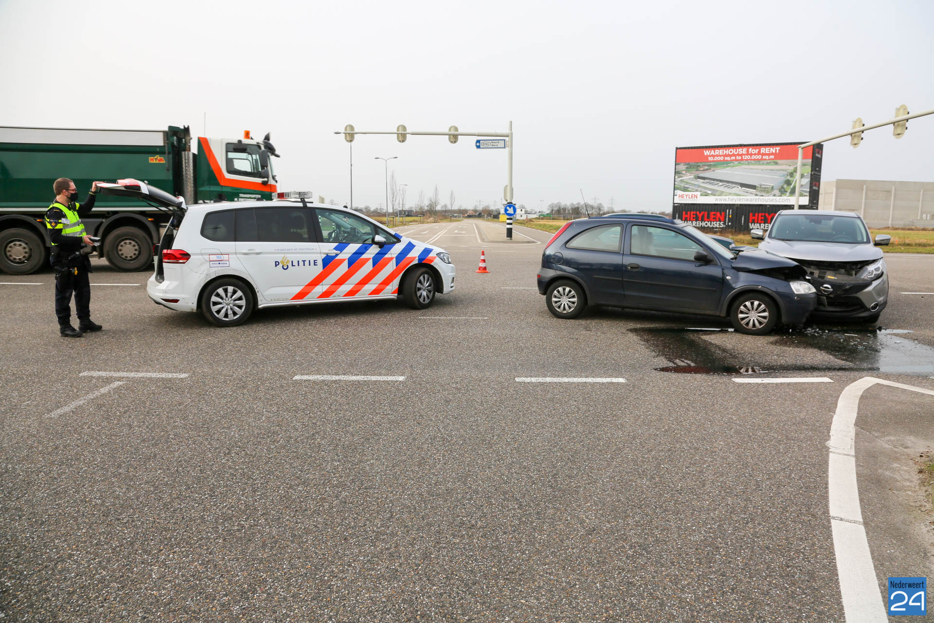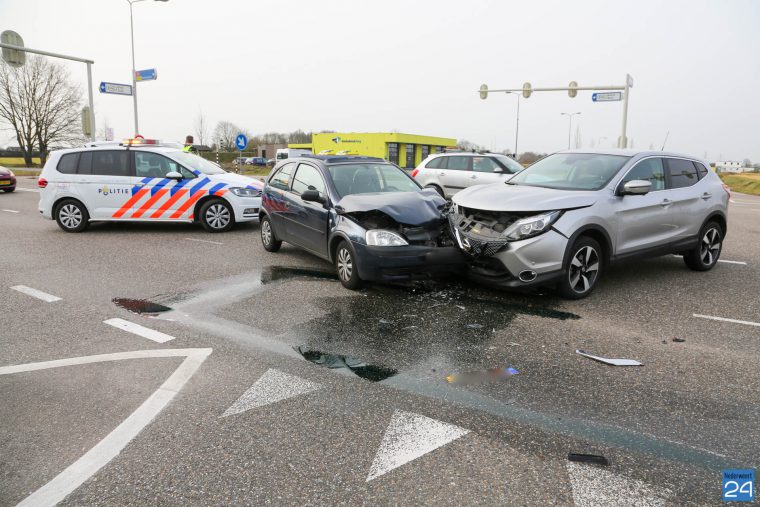Twee personenauto’s zijn maandagmiddag met elkaar in botsing gekomen op de kruising Ringbaan Noord met de Ringbaan Oost in Weert.