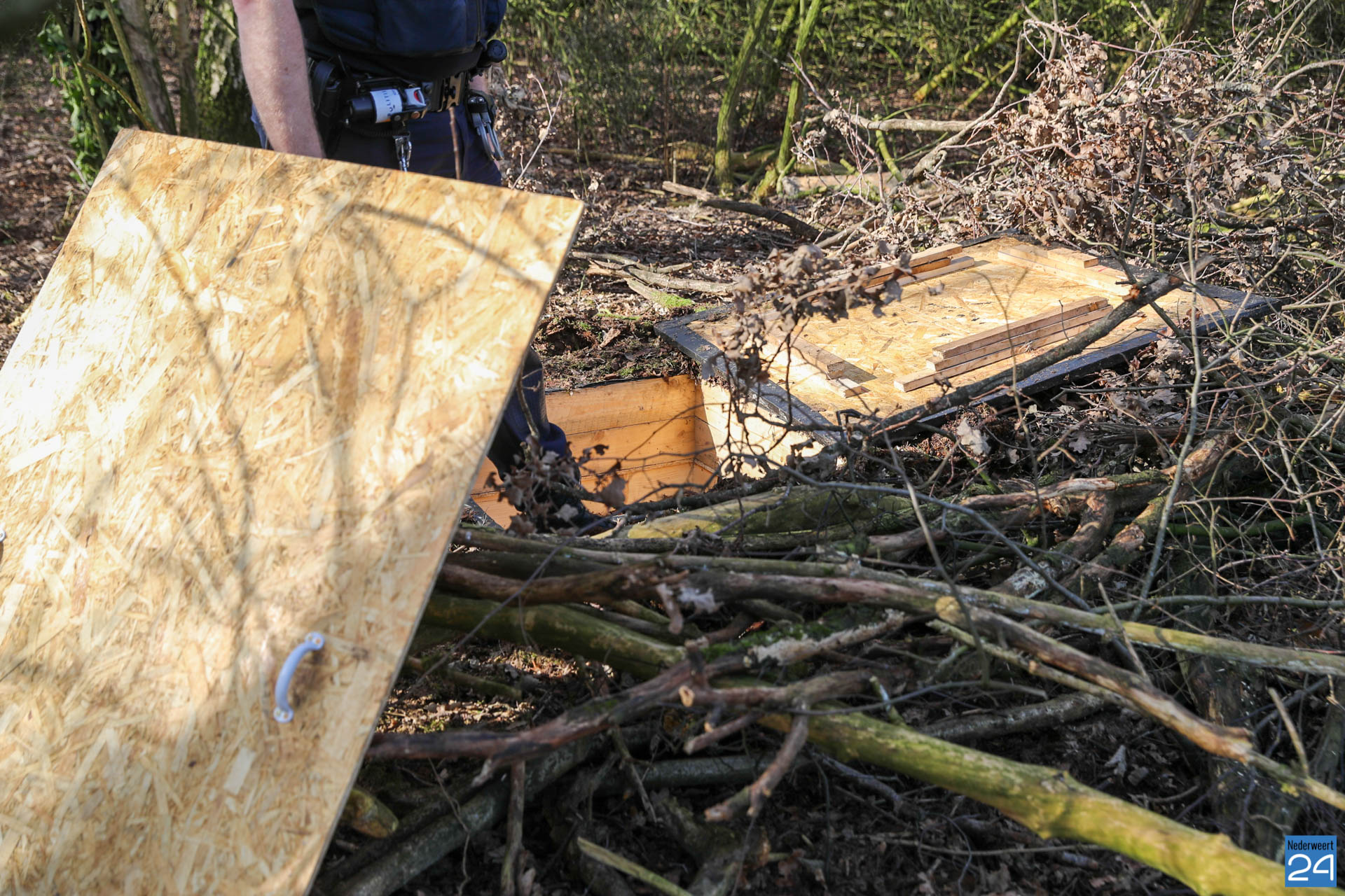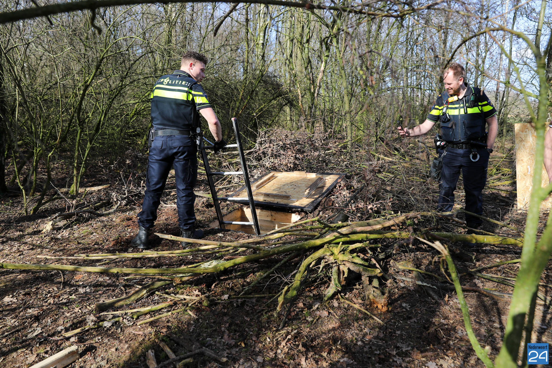 De politie ontving een melding van een hennepkwekerij in een bosje in het buitengebied van Nederweert-Eind. Eenmaal ter plaatse trof de politie een houten luik aan wat toegang verschafte tot de ondergrondse ruimte.