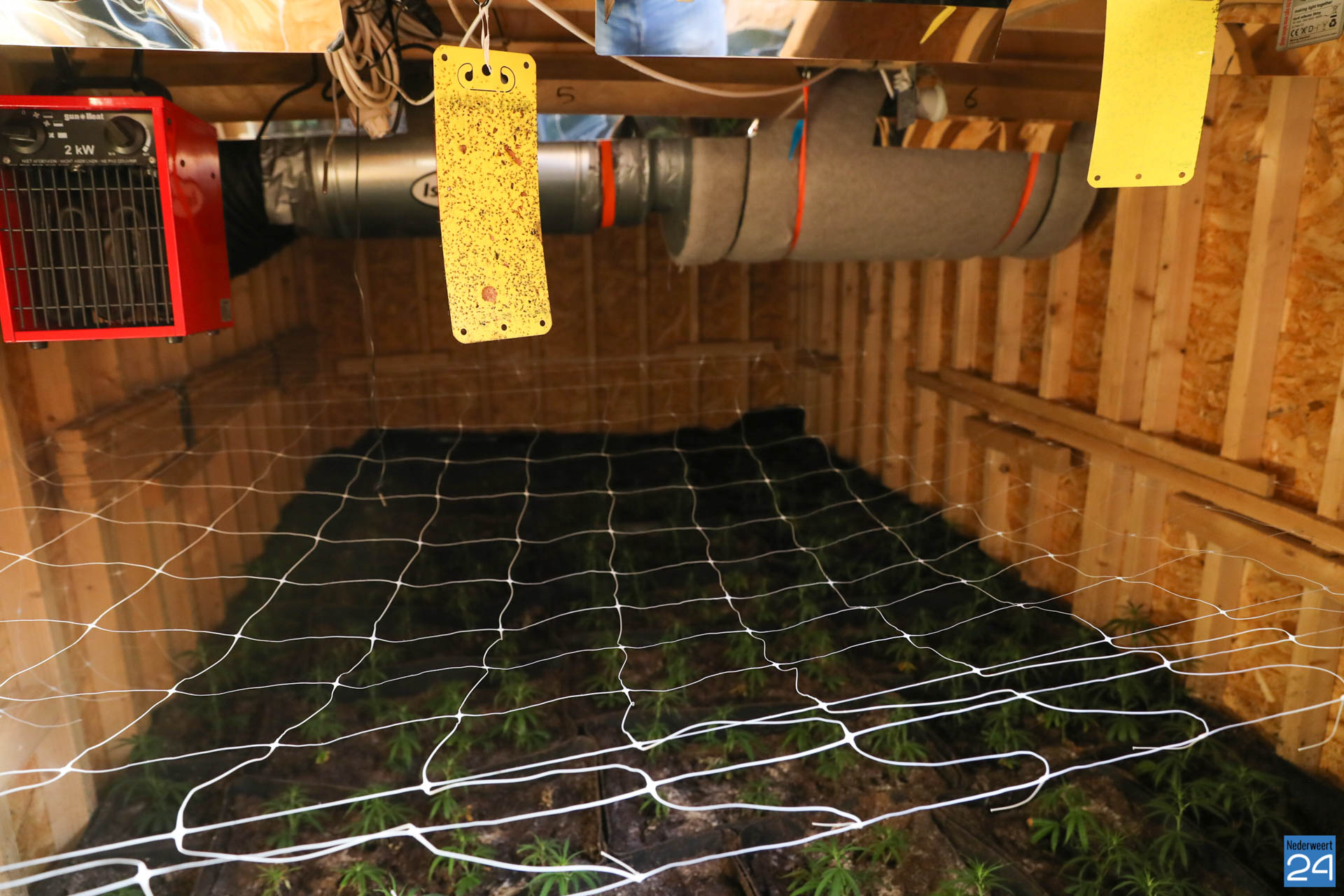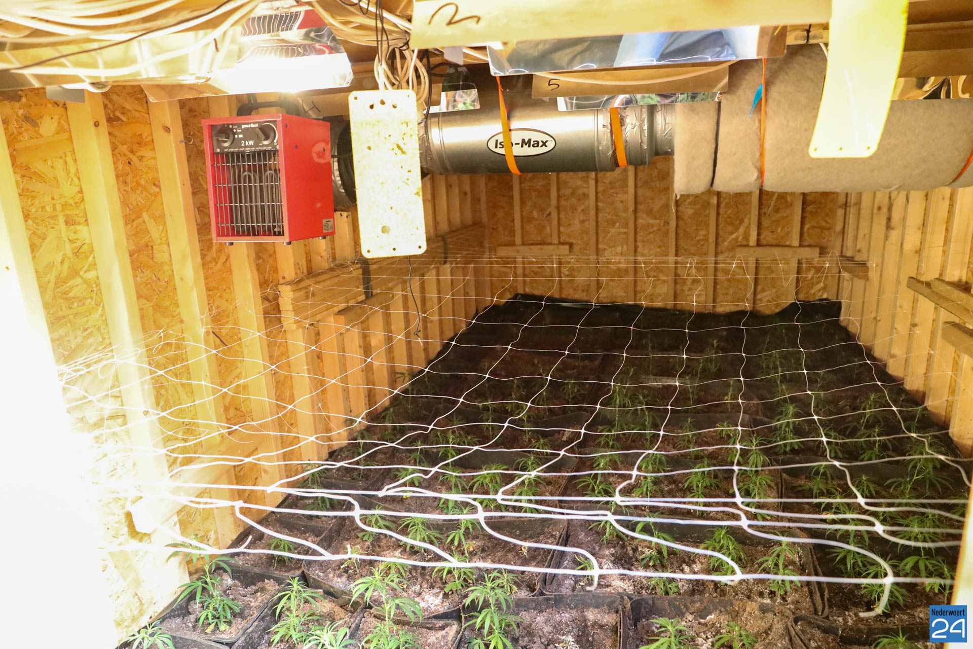 In de ruimte stonden ongeveer 100 planten in een zeer professioneel uitziende kwekerij. Vanaf de weg was er niets van de kwekerij te zien maar een zogenaamd ‘olifantenpaadje‘ wees eenvoudig de weg naar de wietplantage onder de grond.