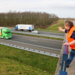 Met enige regelmatig staat Manuela van de Sande (47) samen met haar zoon Bram (13) op het A2-viaduct bij Laar. Gewapend met een camera staan ze urenlang foto’s te maken van voorbijrijdende vrachtwagens. Ze zijn erg enthousiast in hun hobby; truckspotten.