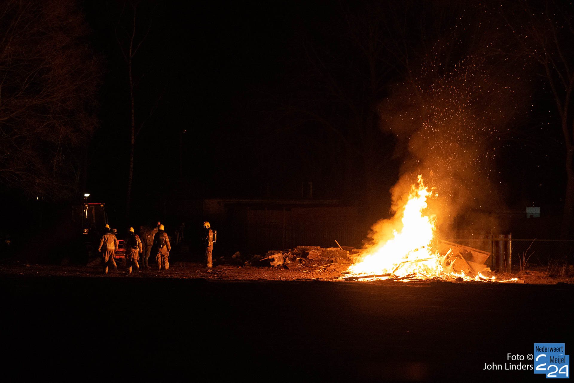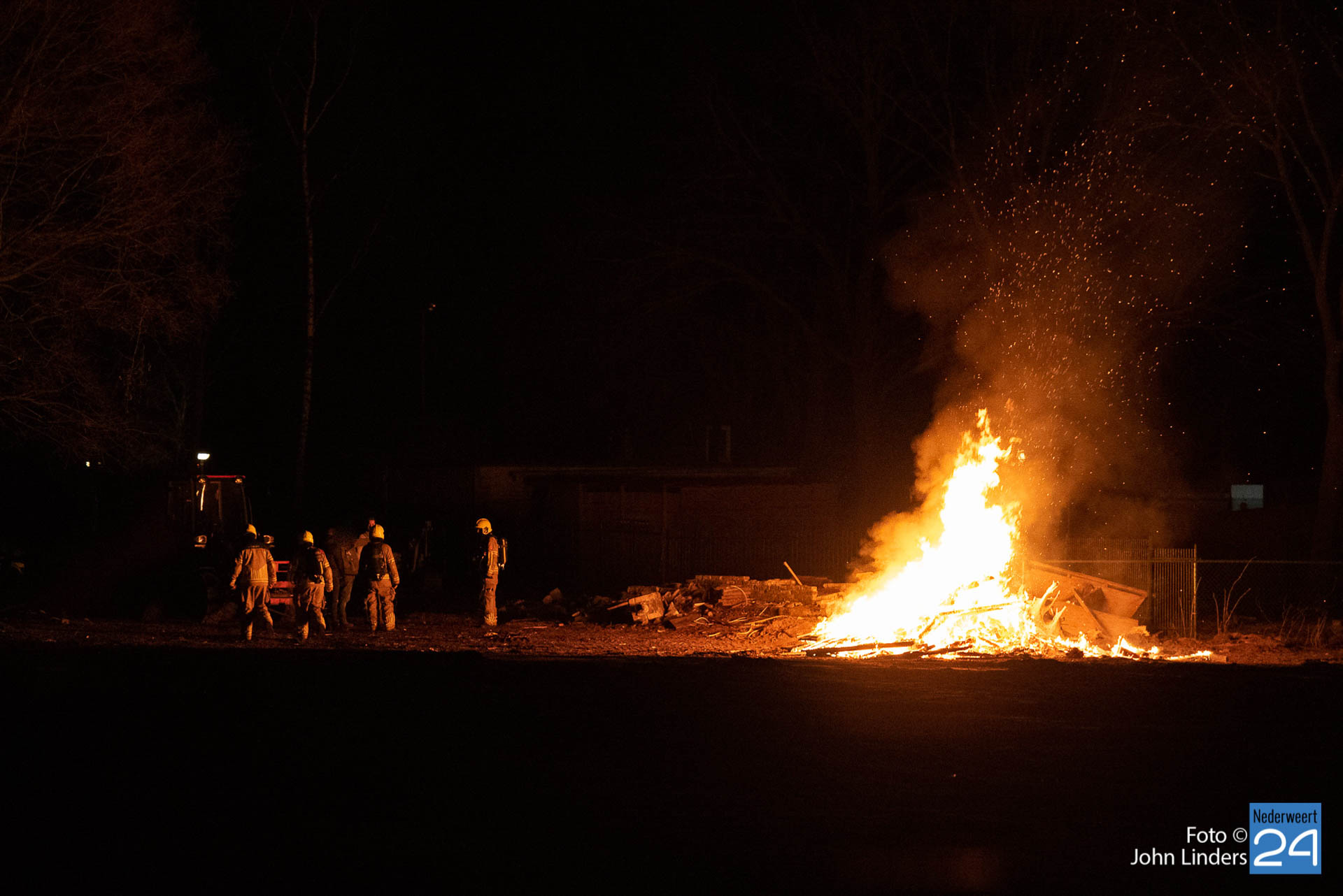 Vanaf de weg was een vuurgloed te zien. Mogelijk heeft iemand gedacht dat er brand was op het terrein. De brandweer kwam polshoogte nemen maar hoefde niet in actie te komen. De politie is met de betrokkenen in gesprek gegaan.