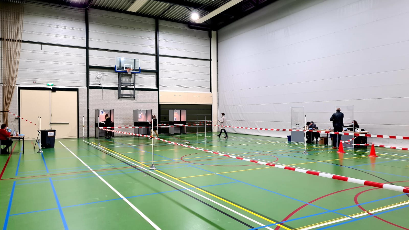 Sporthal De Bengele in Nederweert ingericht als stemlokaal. Foto: Richard van der Steen