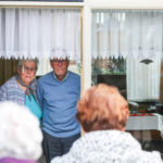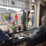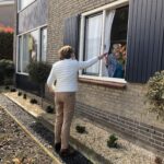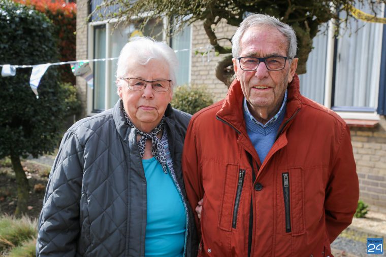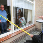 Het jubilerende echtpaar kon vanachter het raam vanuit de woonkamer de bezoekers op een veilige manier ontvangen. Nadat het huis en tuin versierd waren begonnen de feestelijkheden met de eerste bezoekers die kwamen feliciteren en dit liep zo de gehele dag door. De bezoekers werden ontvangen met een koffie en taartje to go. Tussen de sneeuwbuien en de stralende zon door werd het een onvergetelijke dag voor Theo en Geertje.