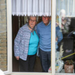 Door de Corona beperkingen werd het 60-jarig huwelijk van Theo en Geertje Creemers-Brinkmans vandaag aan huis gevierd met een raamvisite.