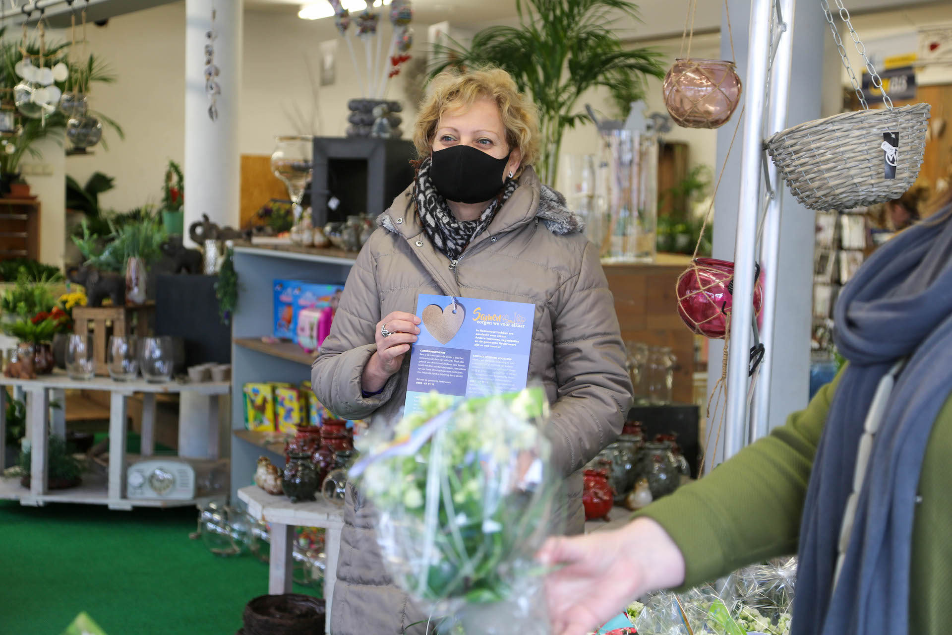 Iedereen kreeg er een mooi kaartje bij om zelf een opbeurende boodschap voor een ander op te schrijven. Ook lagen er flyers met informatie over andere initiatieven om de eenzaamheid tegen te gaan. “We hopen dat we straks nog mooie reacties en foto’s mogen ontvangen”, aldus leefbaarheidsregisseur Harold van der Haar.