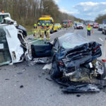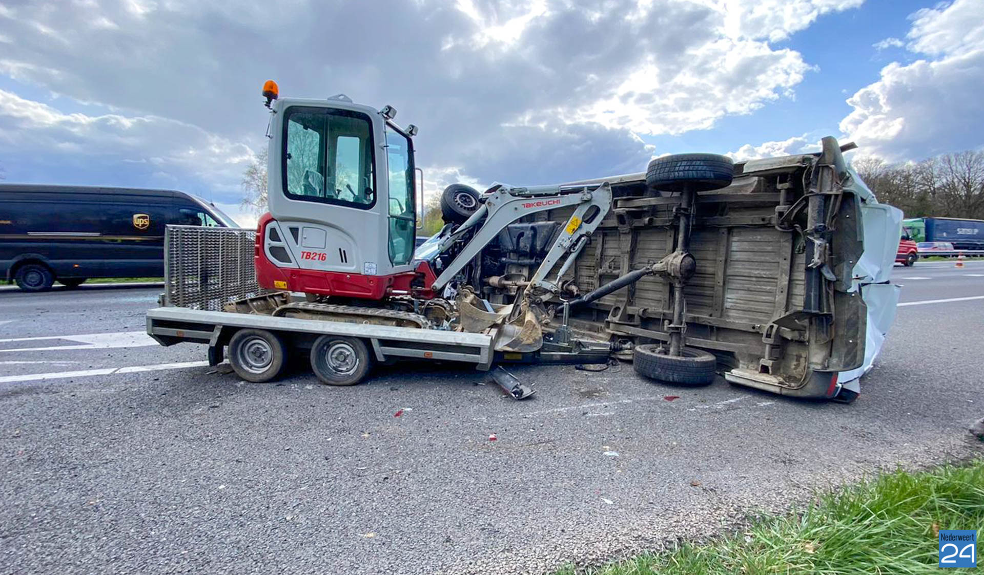 Dinsdagmiddag zijn een personenauto en een bedrijfsbus met aanhanger hard met elkaar in botsing gekomen op de A2 bij afslag Kelpen-Oler.