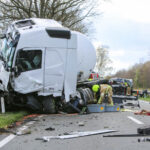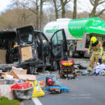 Een busje en een vrachtwagen kwamen dinsdagmiddag hard met elkaar in botsing op de Kanaaldijk N275 in Meijel. De vrachtwagen kwam vervolgens hard tegen een boom tot stilstand. Beide voertuigen raakten ernstig beschadigd.