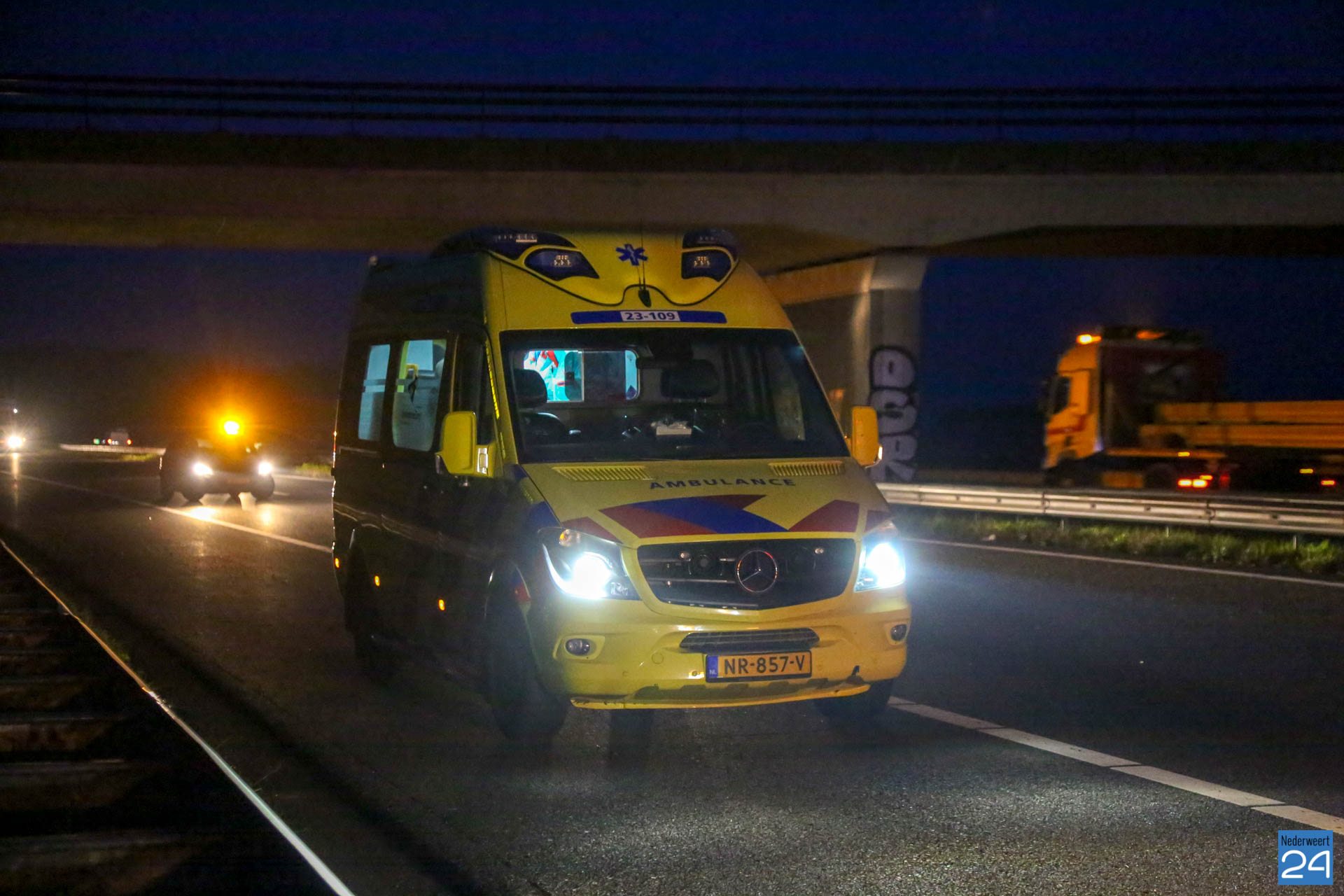 De chauffeur van de bus is ter plaatse door ambulancepersoneel nagekeken op verwondingen. De chauffeur van de vrachtwagen kwam met de schrik vrij. Het ongeval gebeurde in Zuidelijke richting. Eén rijstrook werd tijdelijk afgesloten.