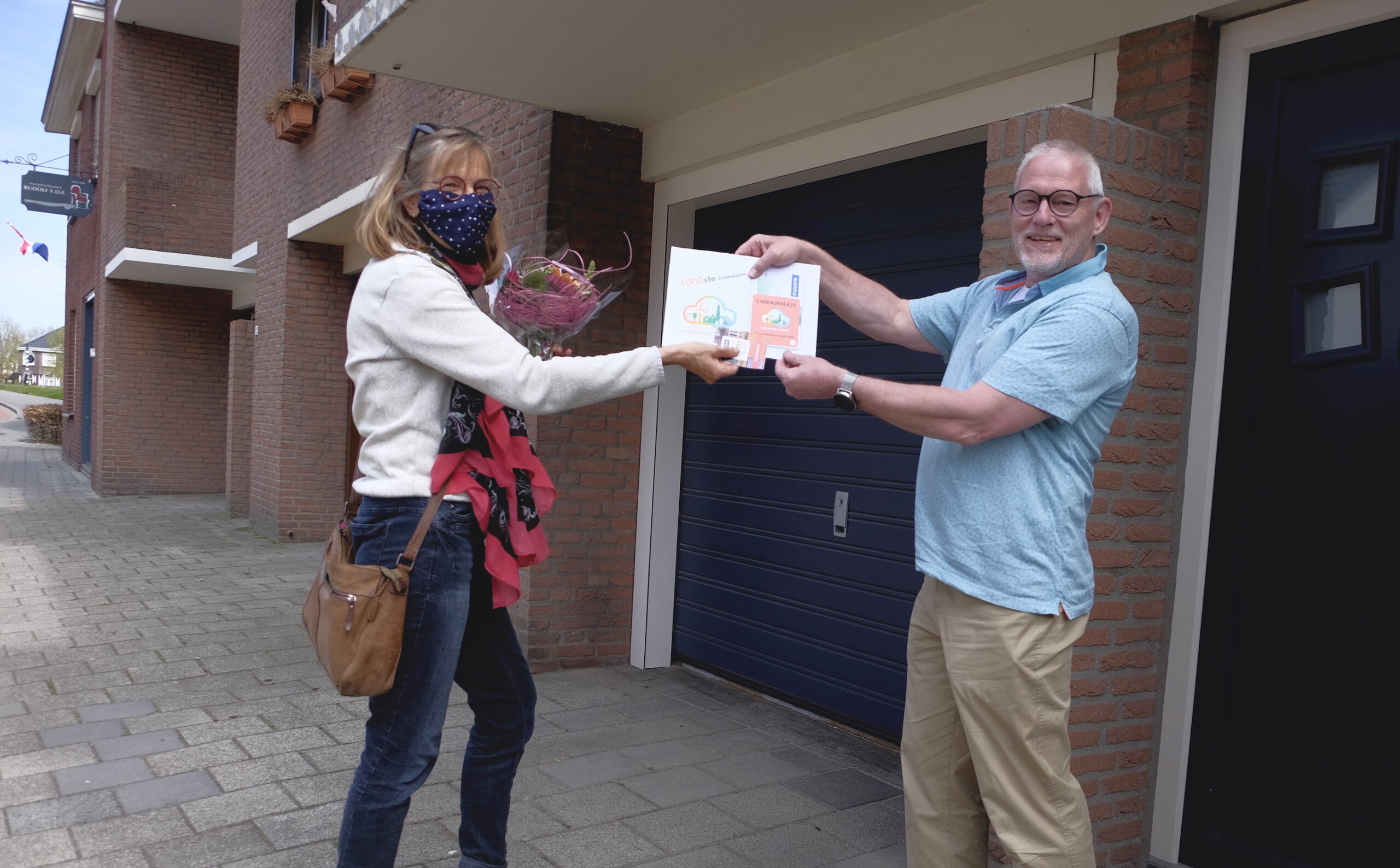 Blij verrast nam Geert Geven, wonend op de Biest in Weert, de duizendste cadeaupas Warm Wonen in Weert op Koningsdag 27 april 2021 aan. Energieverkenner Hilde van Dael overhandigde de pas en de bloemen. “Heel speciaal en leuk om te zien wie er achter de organisatie van Warm Wonen in Weert zit”, zegt Geven. Welke energiebesparende artikelen hij met de pas gaat kopen? “Tochtstrips! Ik heb al HR++ glas en kunststof kozijnen. Maar de kozijnen zijn wat aan het bollen. Met de strips blijft de warmte binnen.”