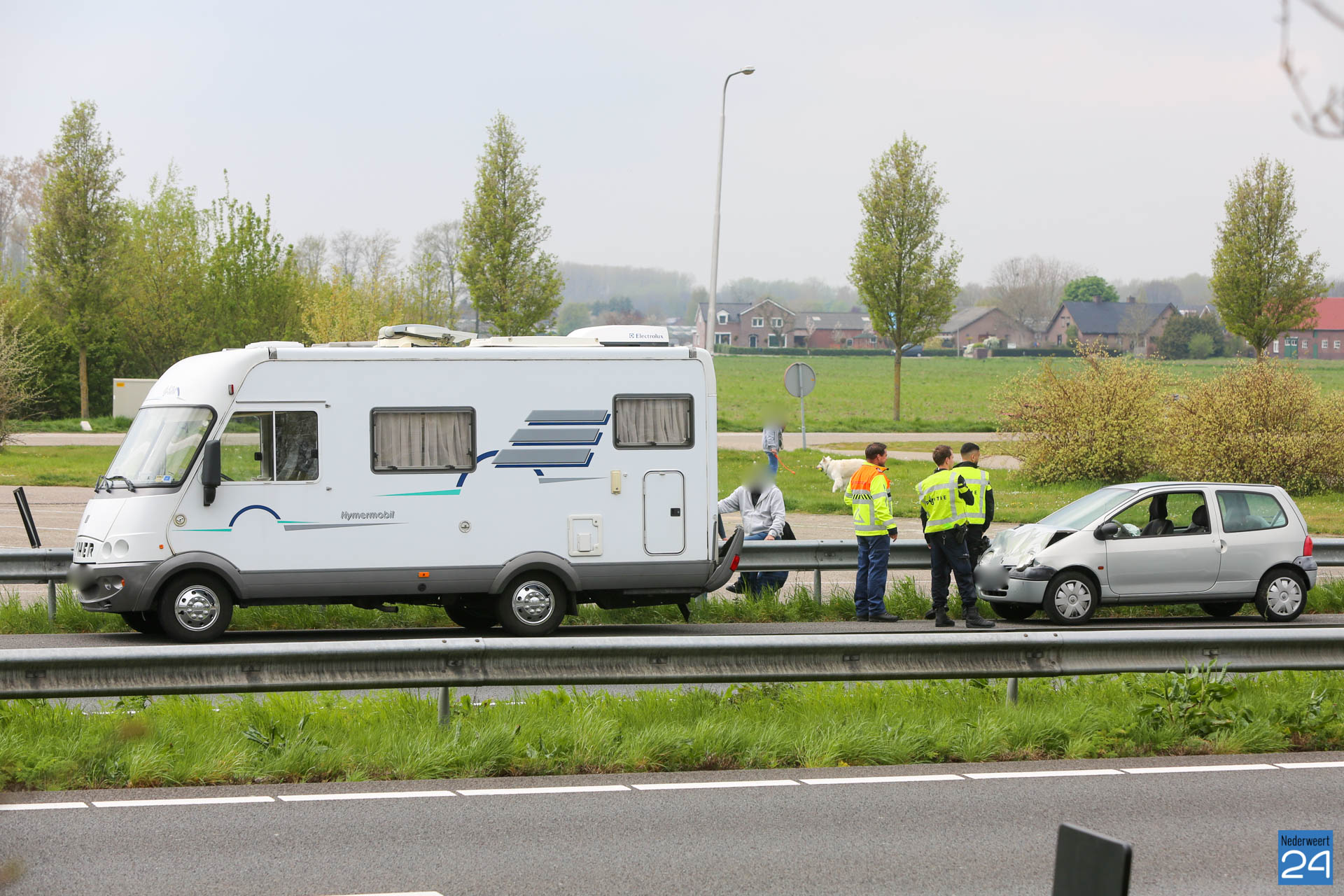 Een personenauto is vrijdagmiddag hard achterop een camper gebotst op de snelweg A2 bij Ell.