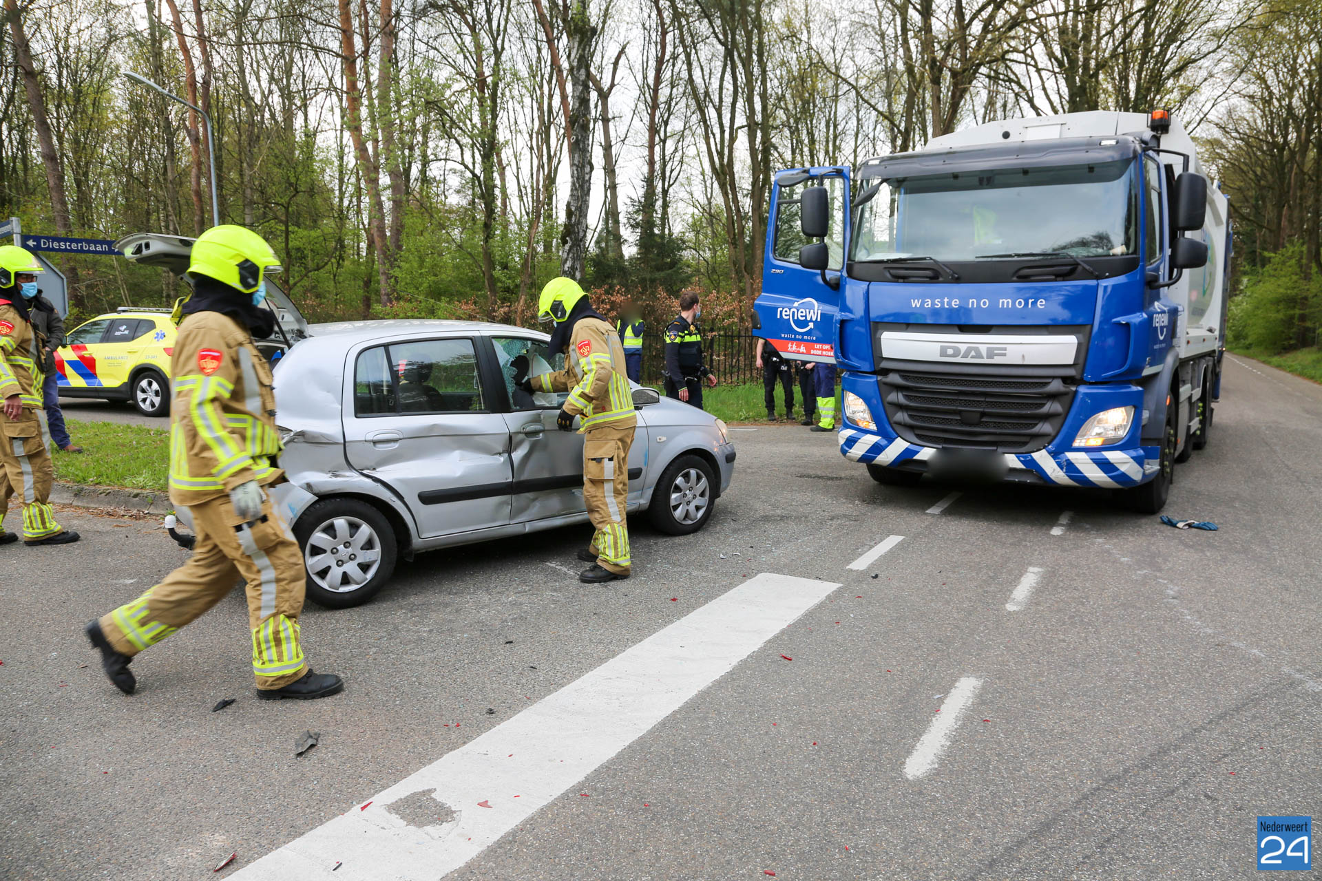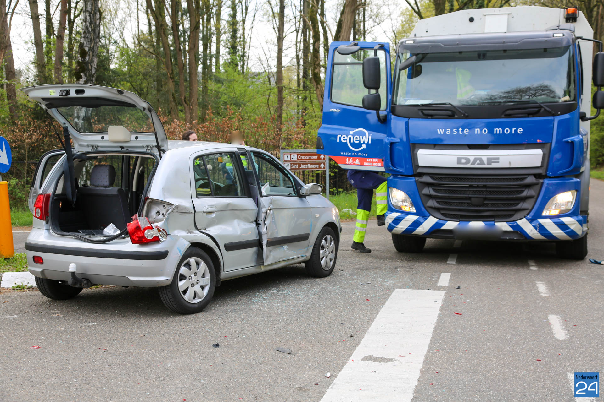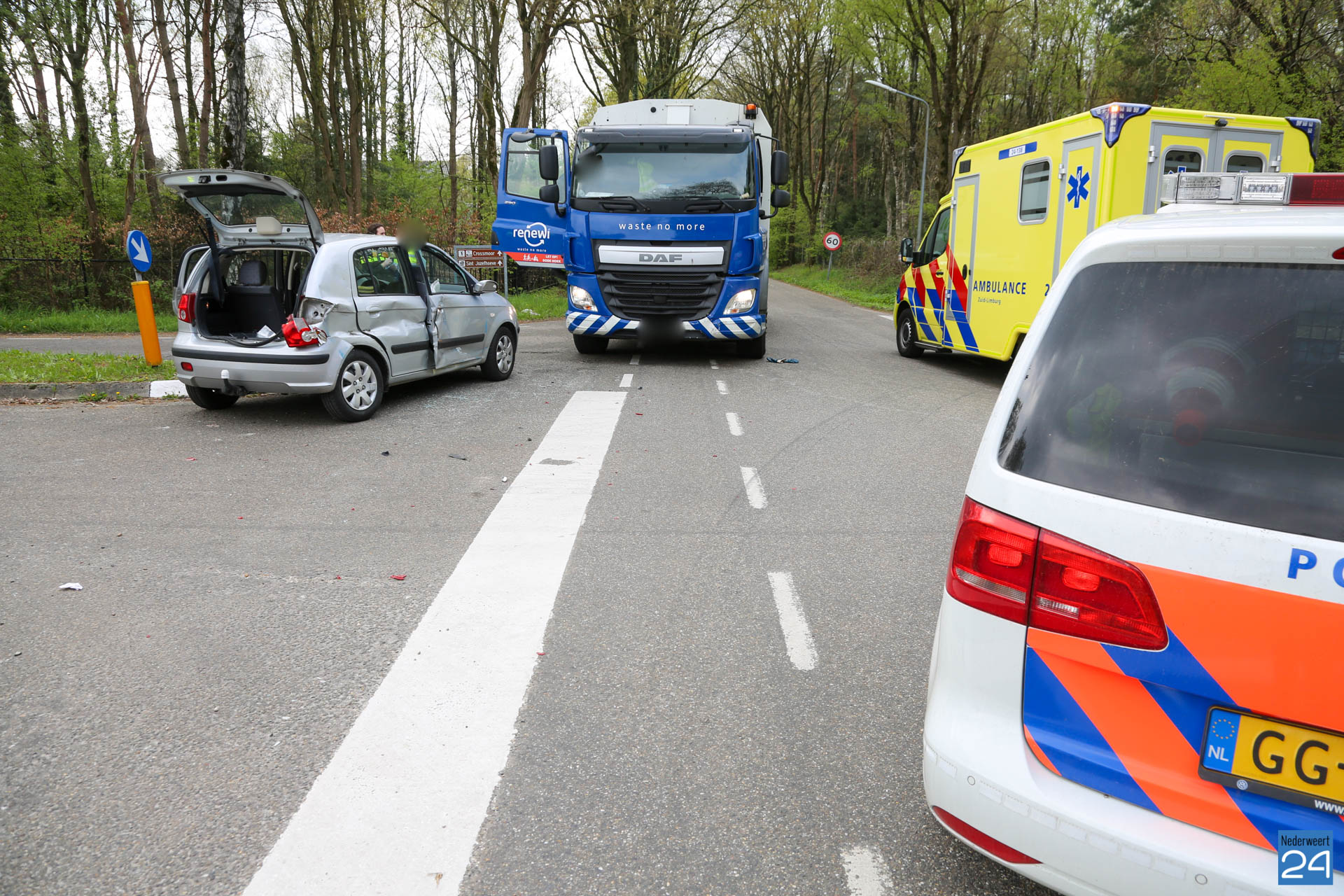 Een personenauto is vrijdagmiddag in botsing gekomen met een vuilniswagen. Het incident gebeurde op de kruising Diesterbaan met de Herenvennenweg in Weert.