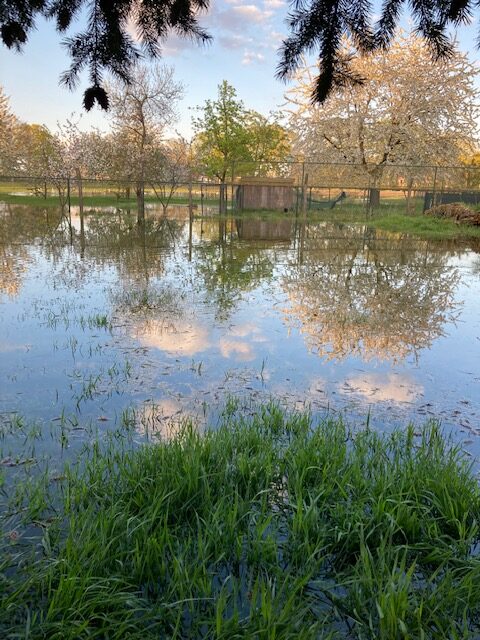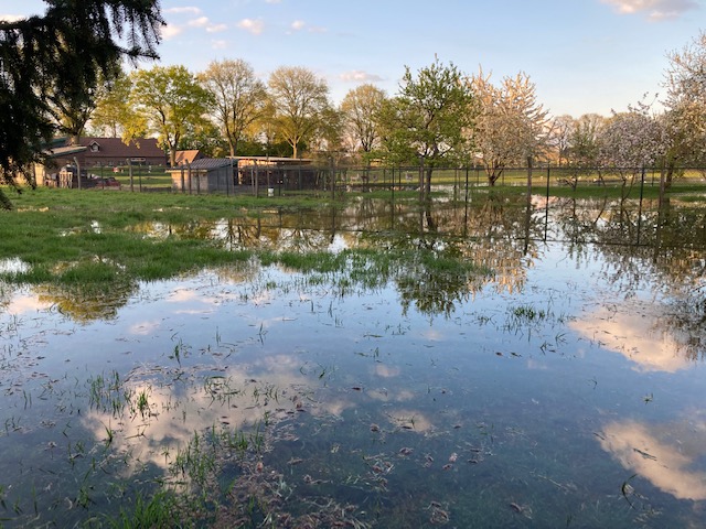 Inmiddels is een kippenhok en een tuinhuisje ondergelopen. Daar is volgens de bewoner door het water kortsluiting ontstaan en heeft hij de stroom moeten afsluiten. Daarnaast is zijn laminaat-vloer vernield en zijn grote stukken land blank komen staan.